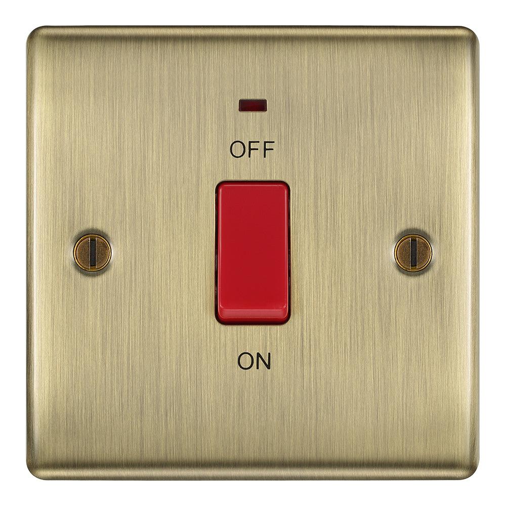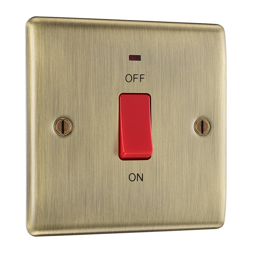 BG NAB74 Antique Brass 45A Square Cooker Control Unit with Neon