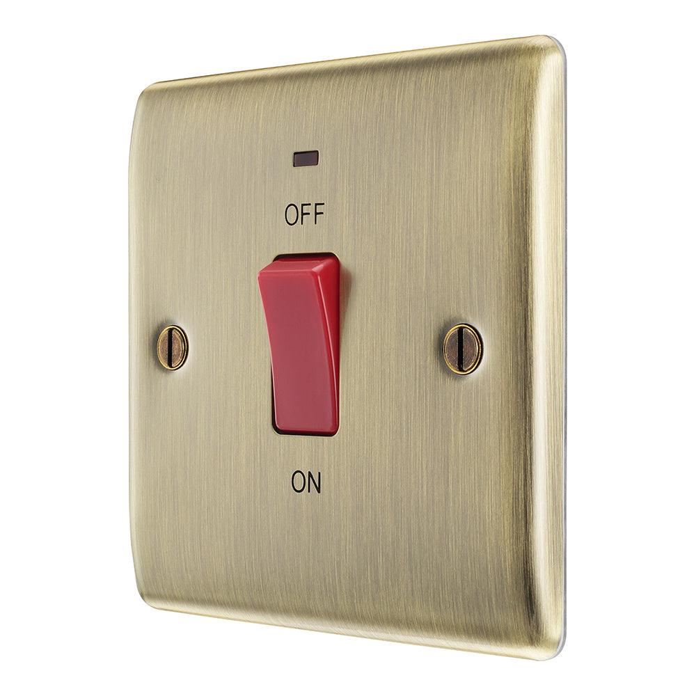 The BG NAB74 is a 45A Square Cooker Control Unit with Neon made from high quality components, in a sleek and stylish antique brass finish.