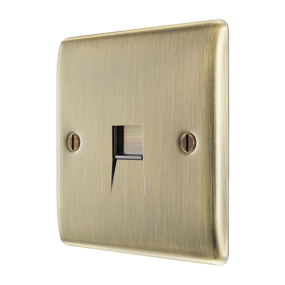 The BG NABBTS1 is a Single Slave Telephone Socket made from high quality components, in a sleek and stylish antique brass finish.