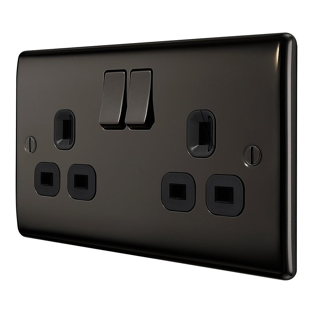 BG NBN22B Black Nickel Double Switched 13A Socket