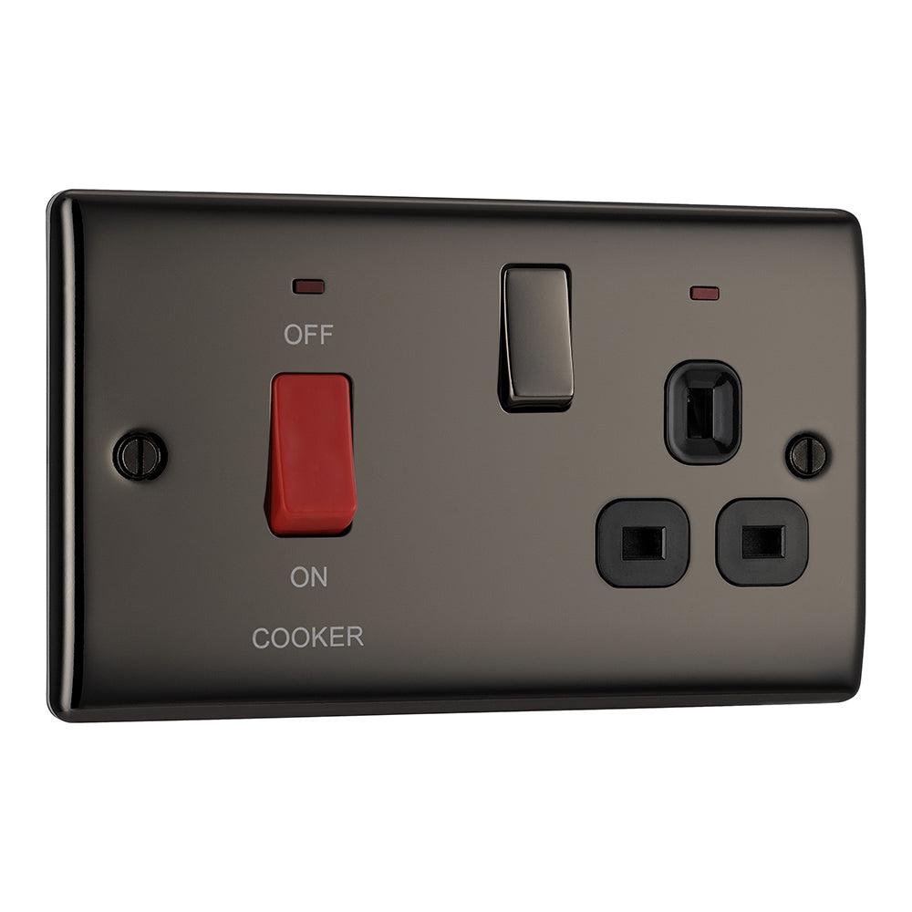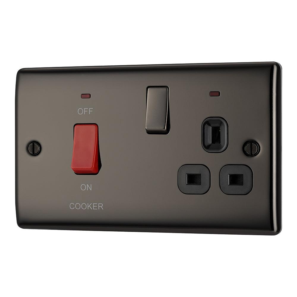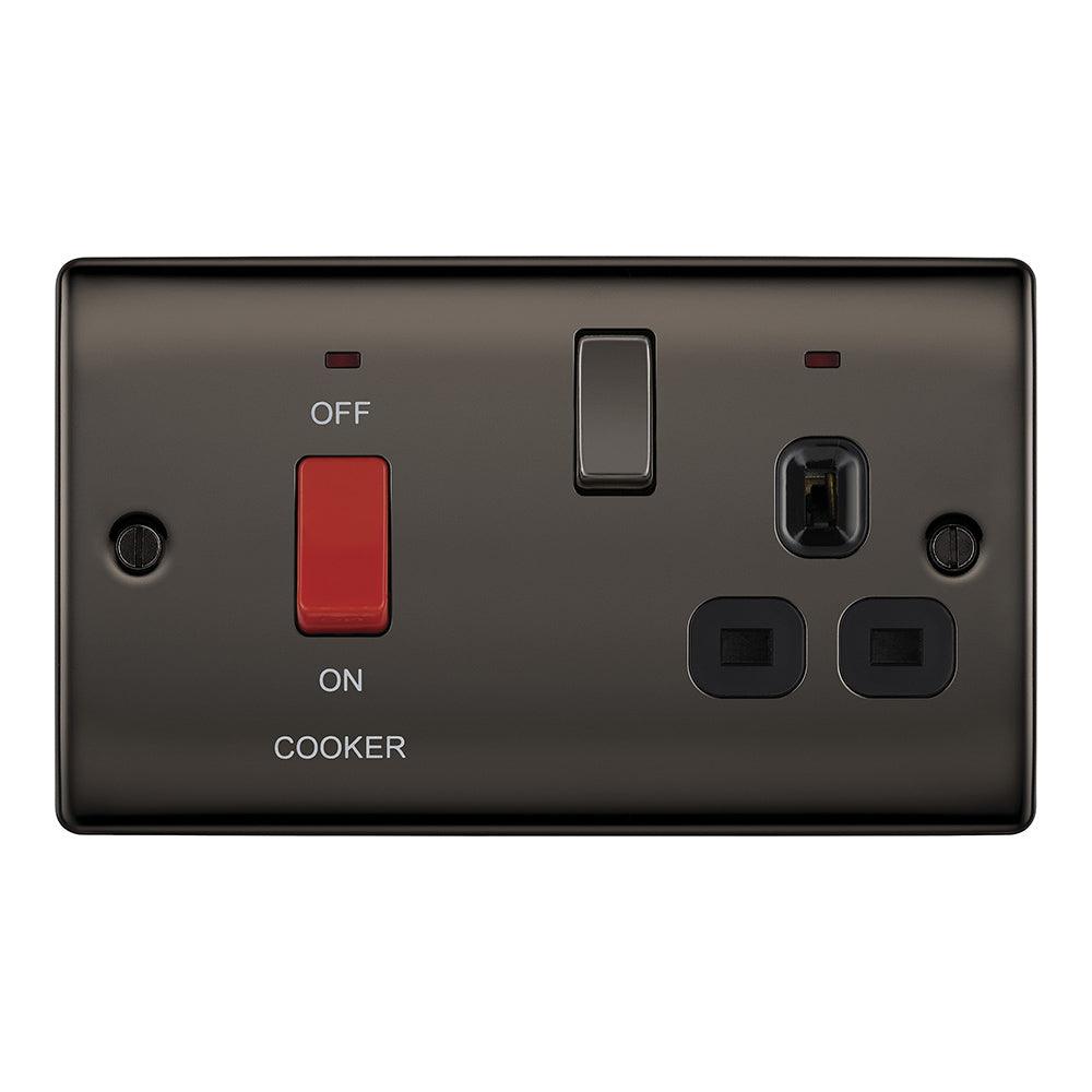 BG NBN70B Black Nickel 45A Cooker Control Unit with Switched 13A Socket with Neon