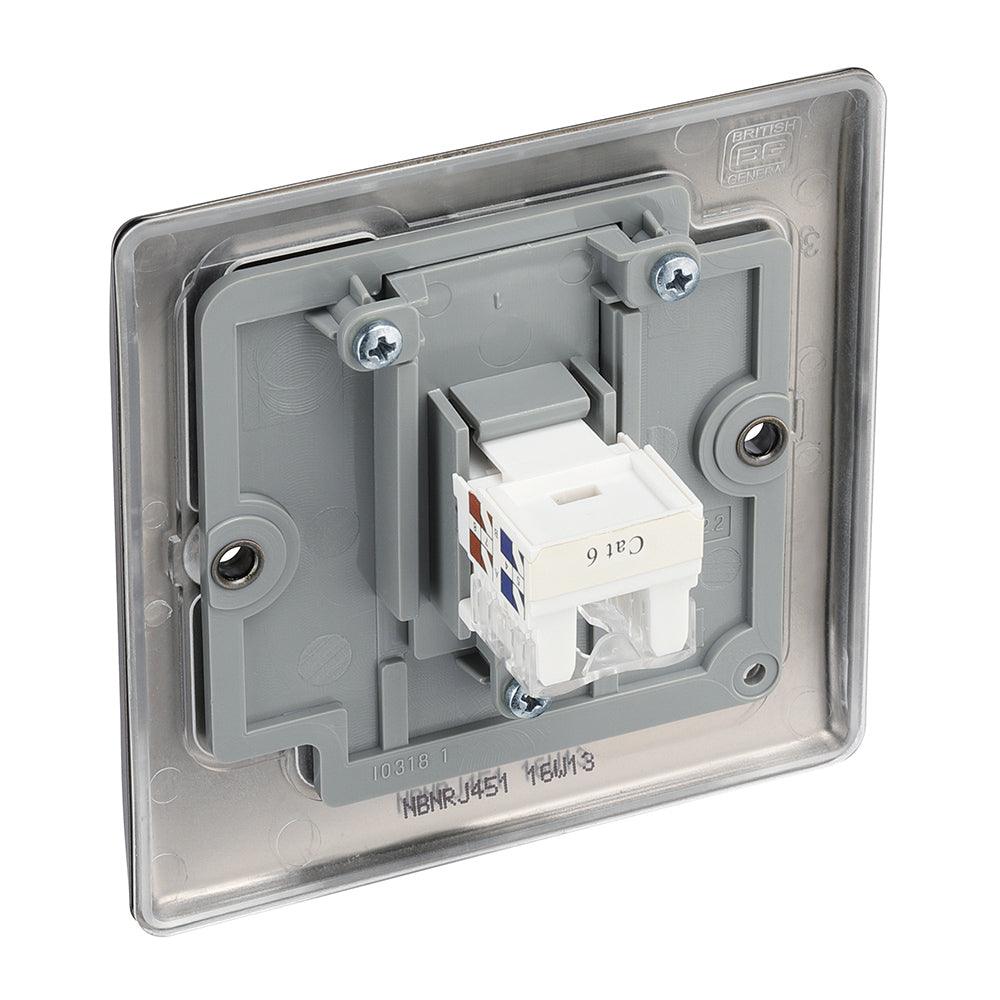 The BG NBNRJ451 is a Single RJ45 Telephone Socket made from high quality components, in a sleek and stylish black nickel finish.