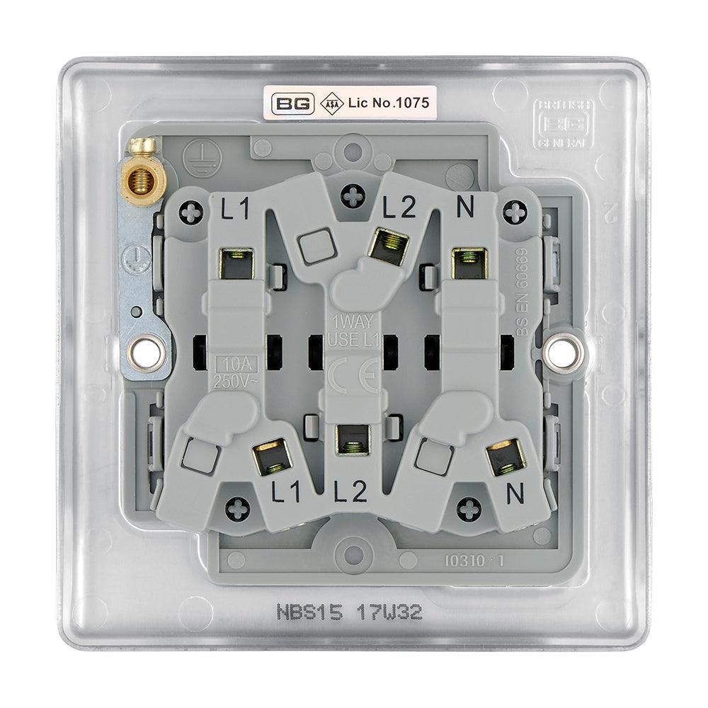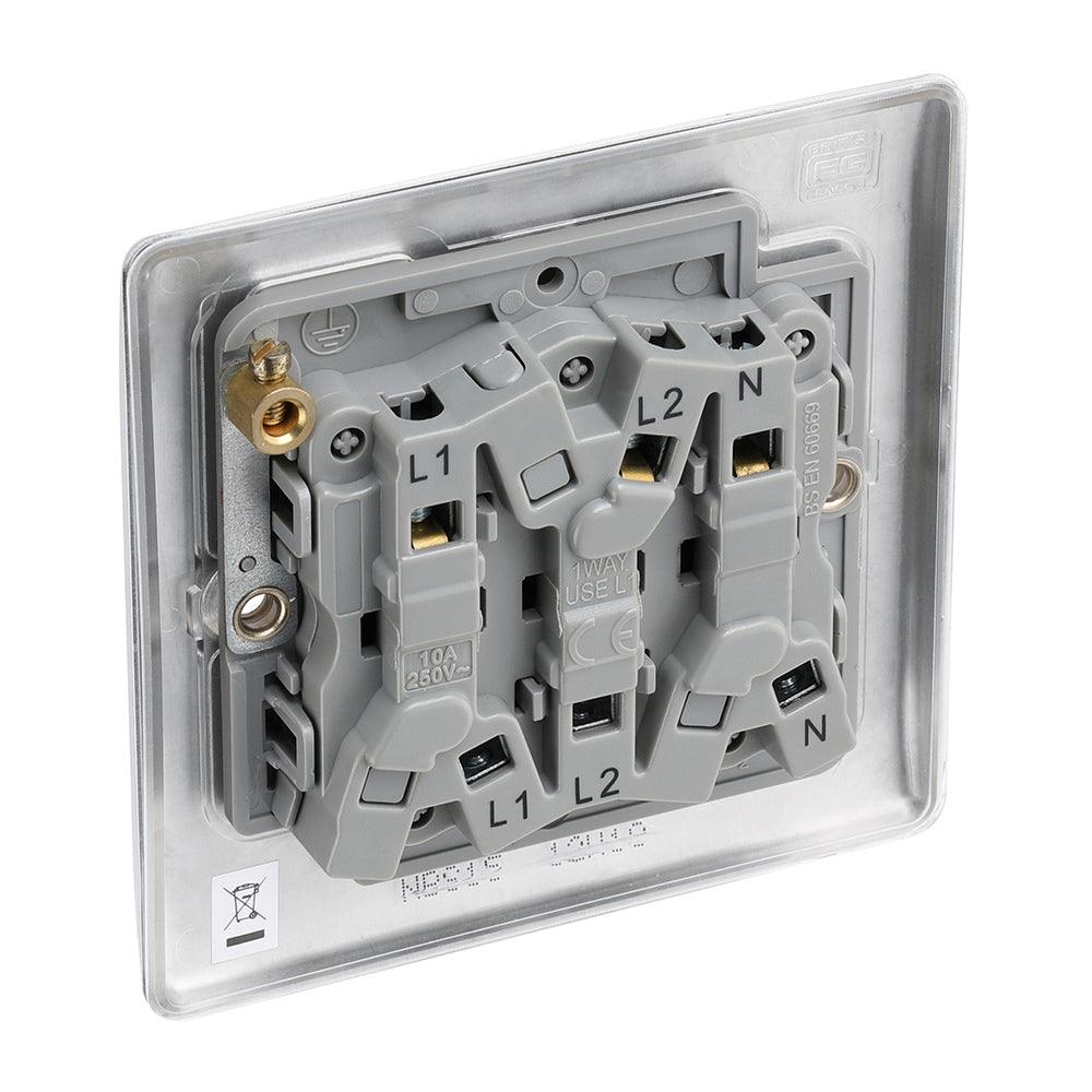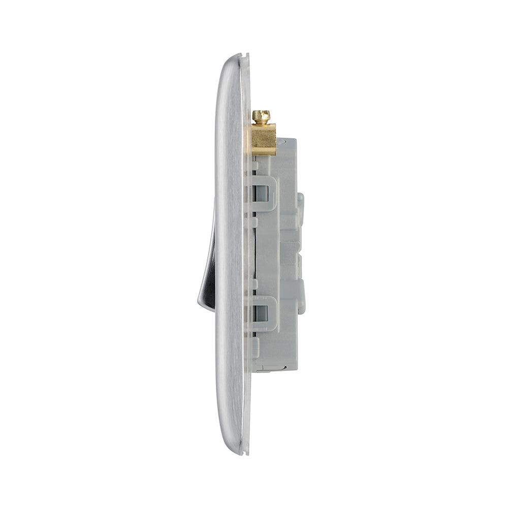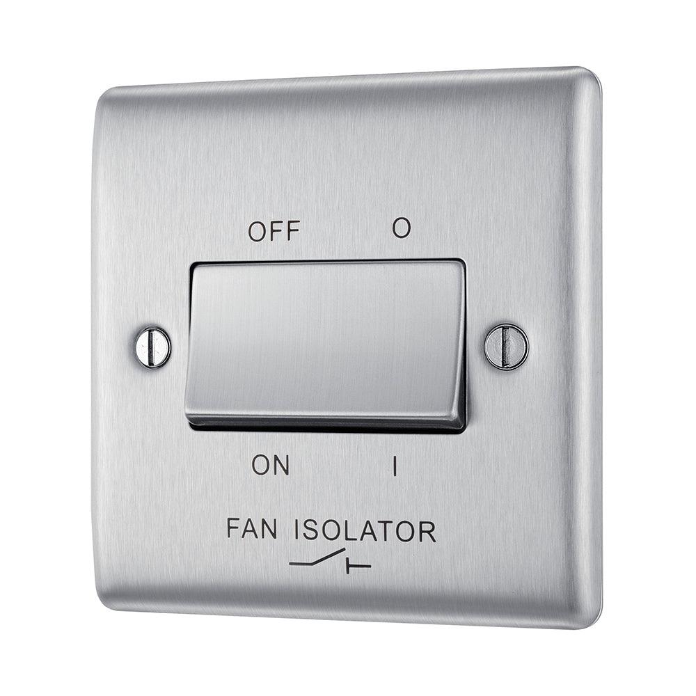 The BG NBS15 is a Triple Pole Fan Isolator Switch 10A made from high quality components, in a sleek and stylish brushed steel finish.