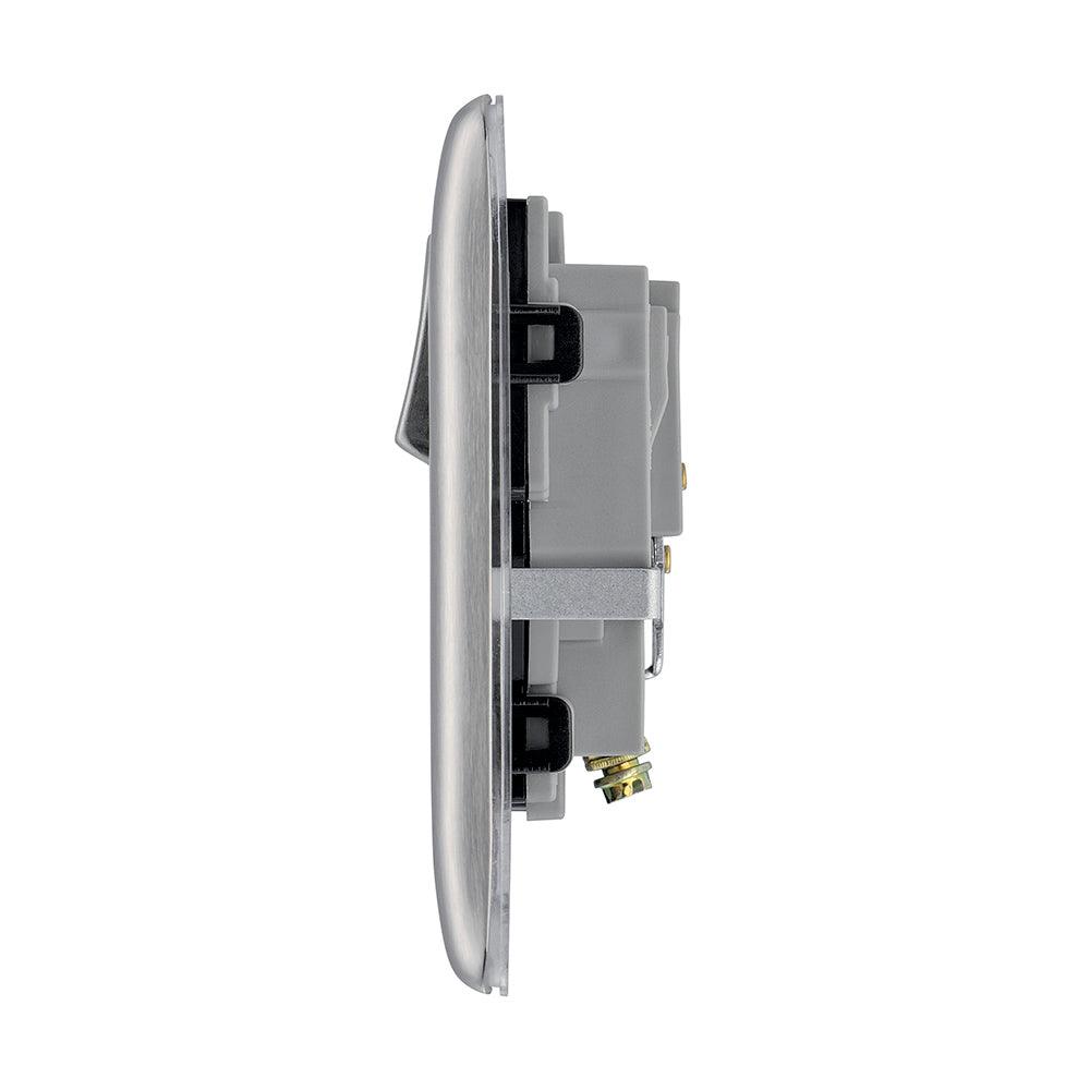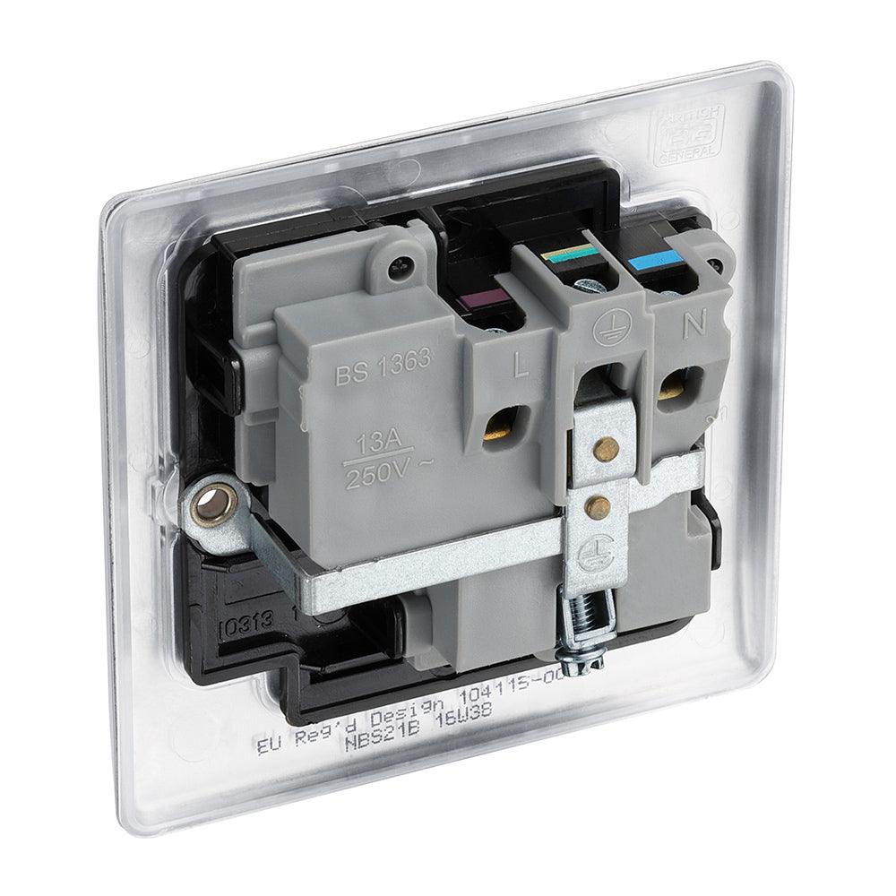 The BG NBS21B is a Single Switched Socket made from high quality components, in a sleek and stylish brushed steel finish.
