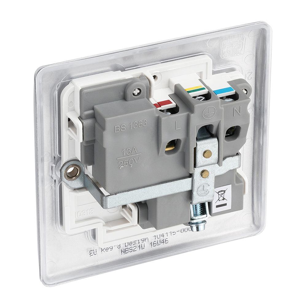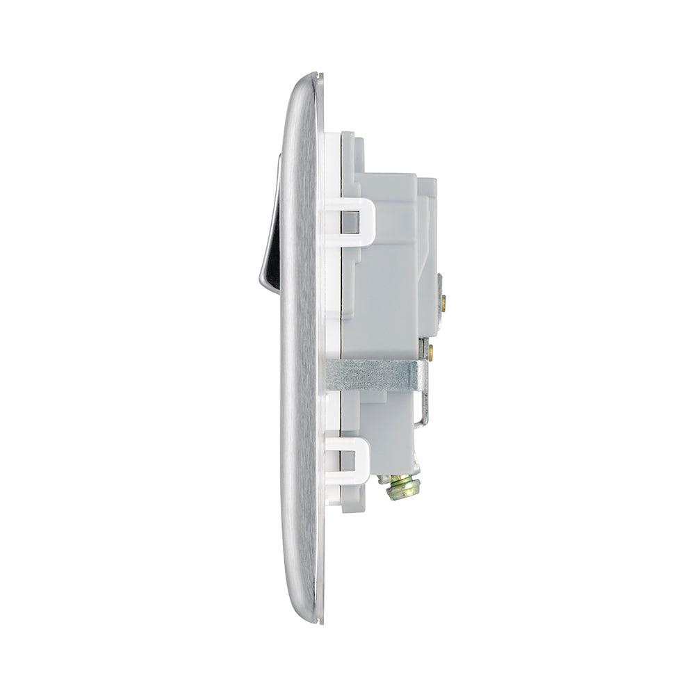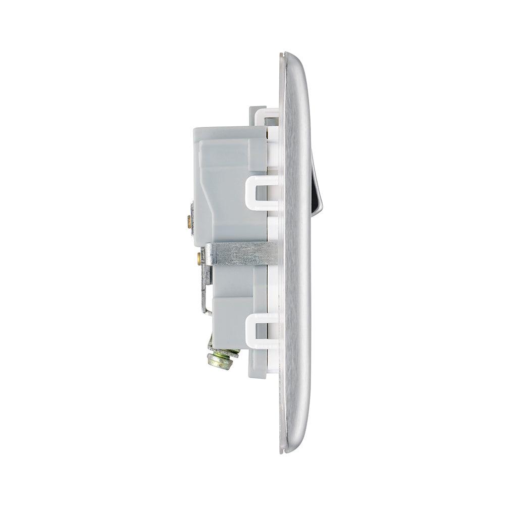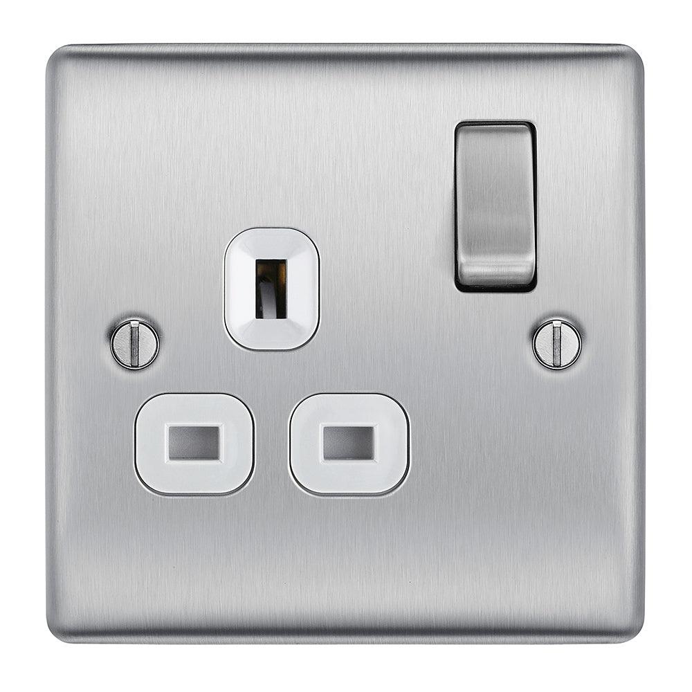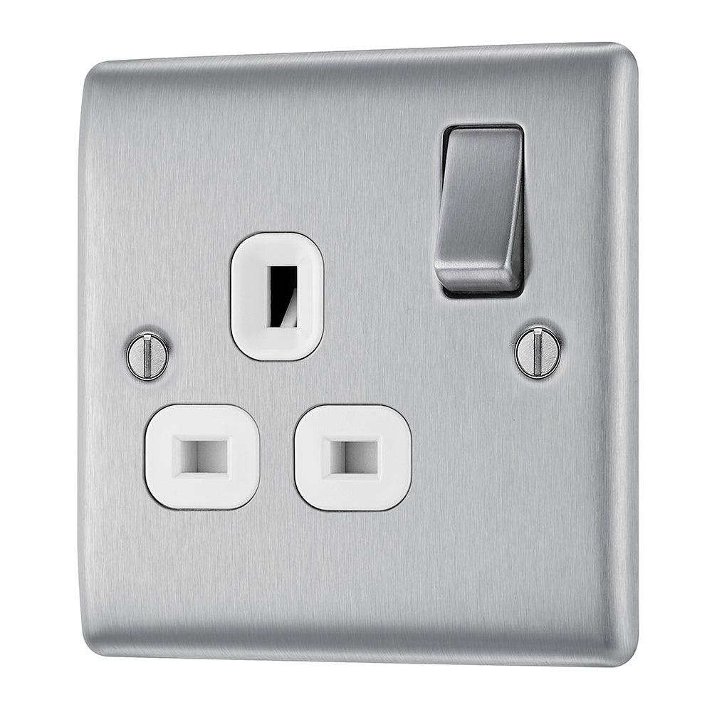 The BG NBS21W is a Single Switched Socket made from high quality components, in a sleek and stylish brushed steel finish.