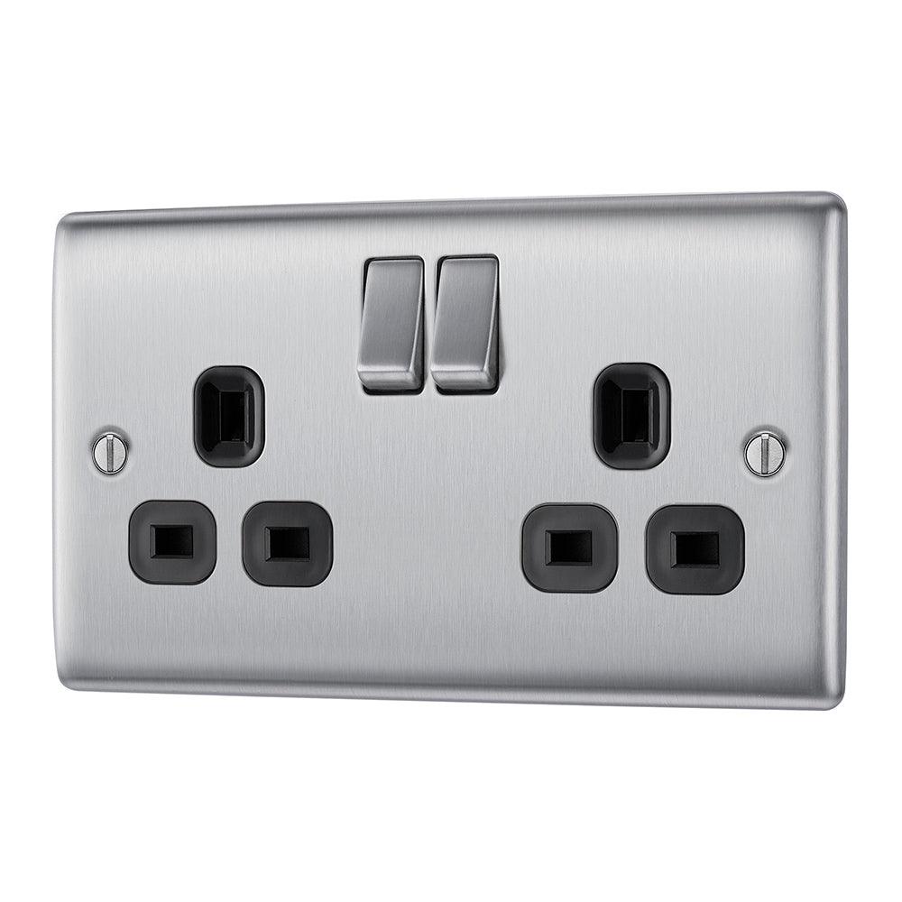 The BG NBS22B is a Double Switched Socket made from high quality components, in a sleek and stylish brushed steel finish.