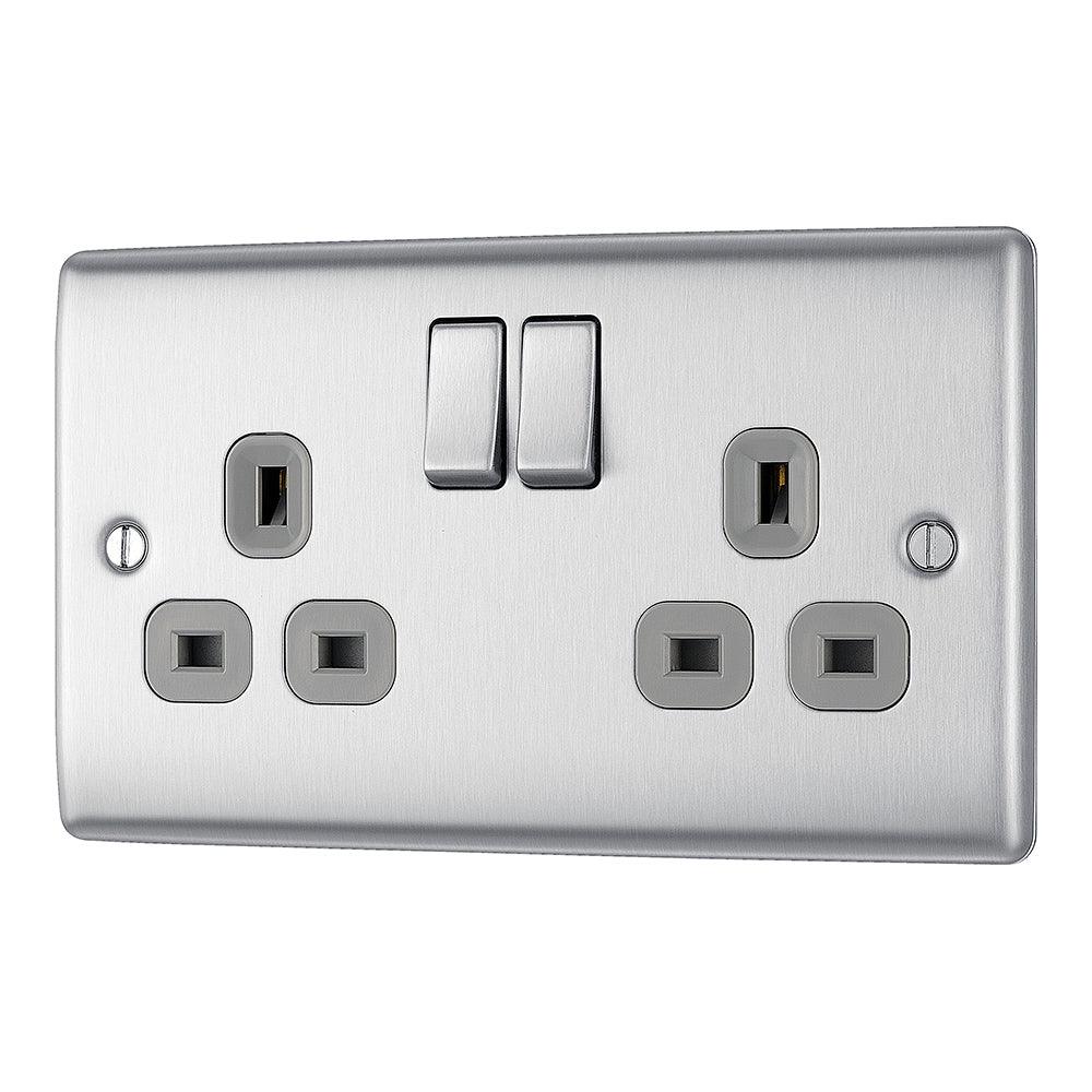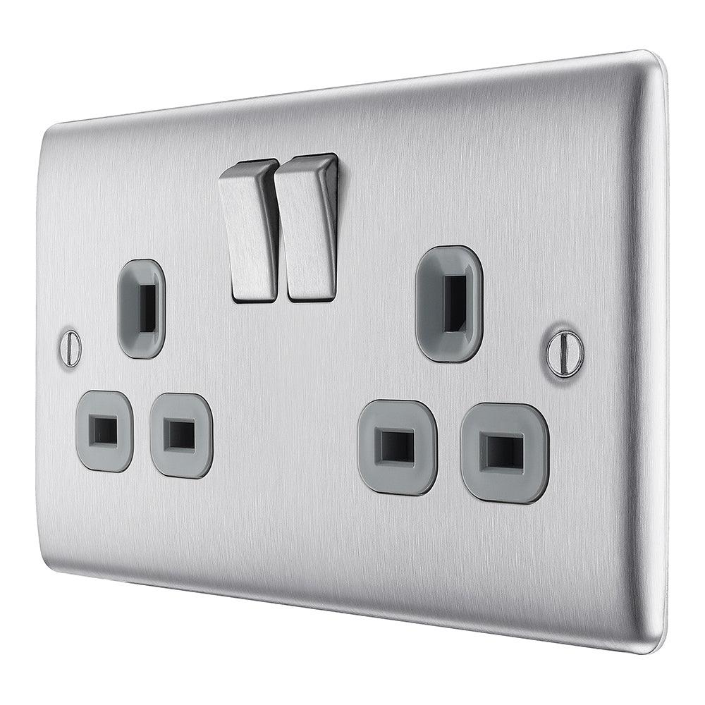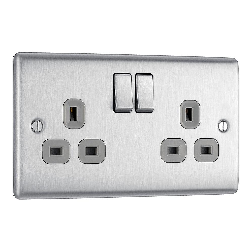 The BG NBS22G is a Double Switched Socket made from high quality components, in a sleek and stylish brushed steel finish.