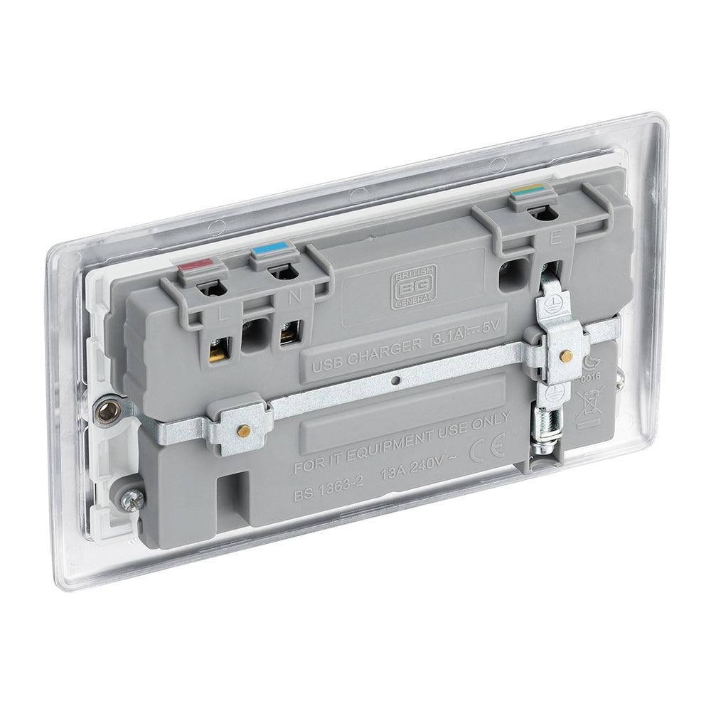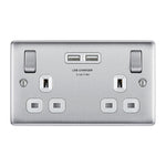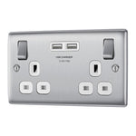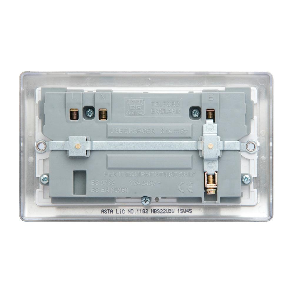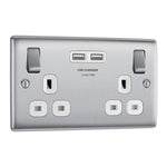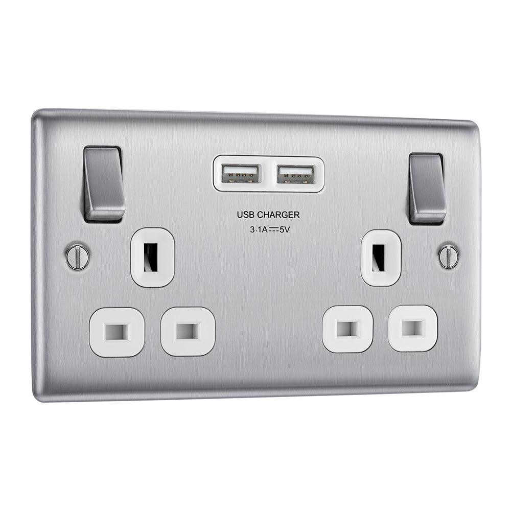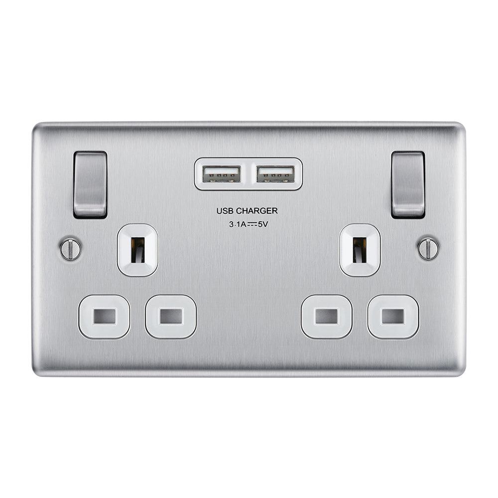 BG NBS22U3W Stainless Steel Double Switched 13A Socket with USB Charging - 2X USB Sockets (3.1A)
