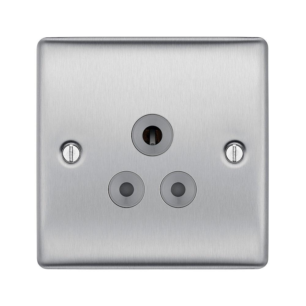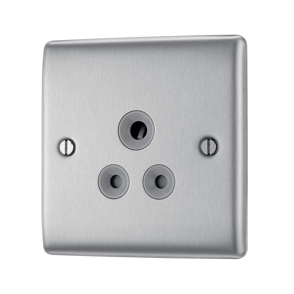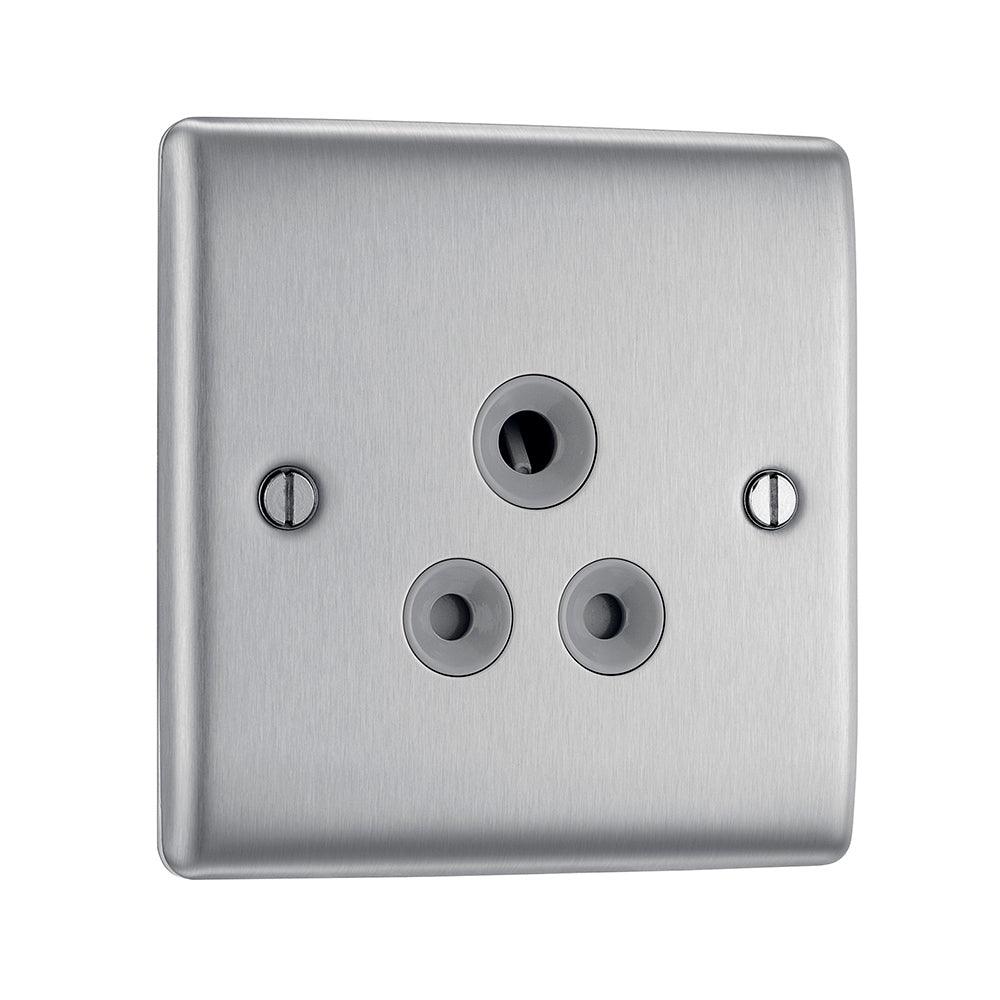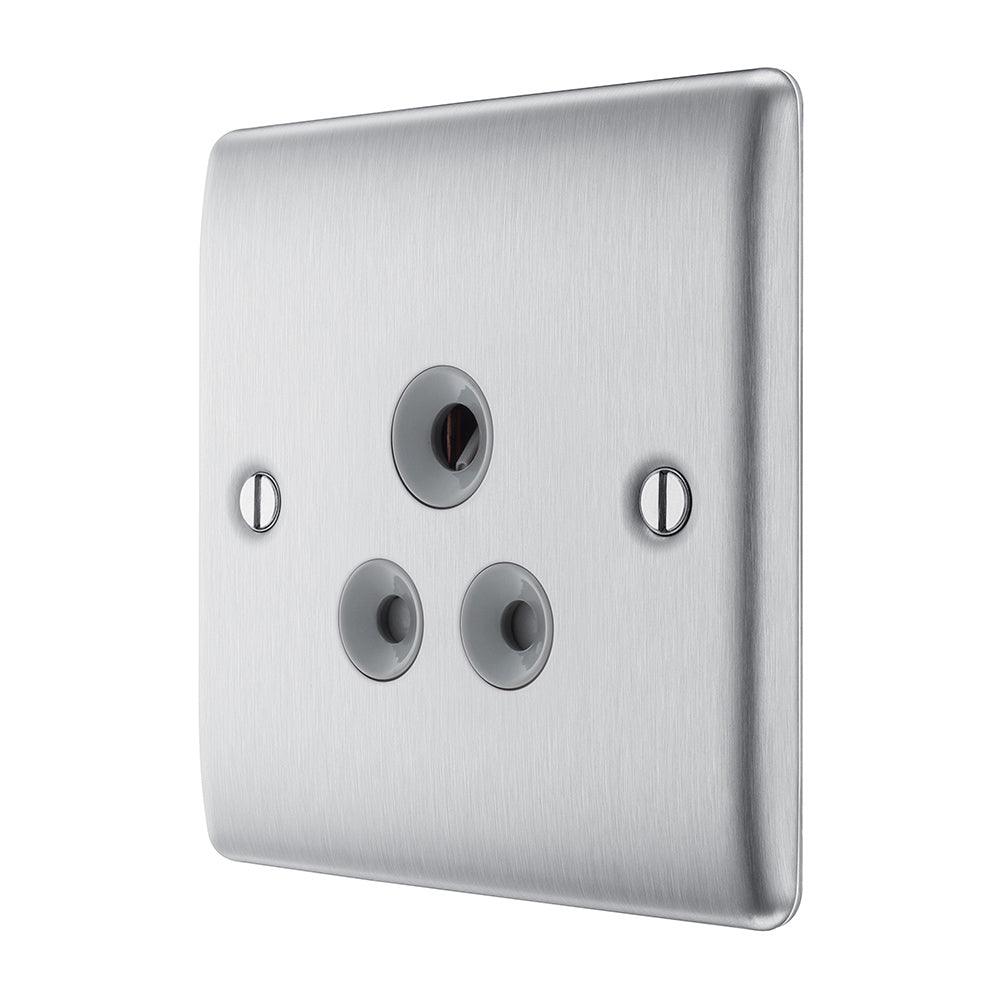 The BG NBS29G is a Single Round Pin Unswitched 5A Socket made from high quality components, in a sleek and stylish brushed steel finish.