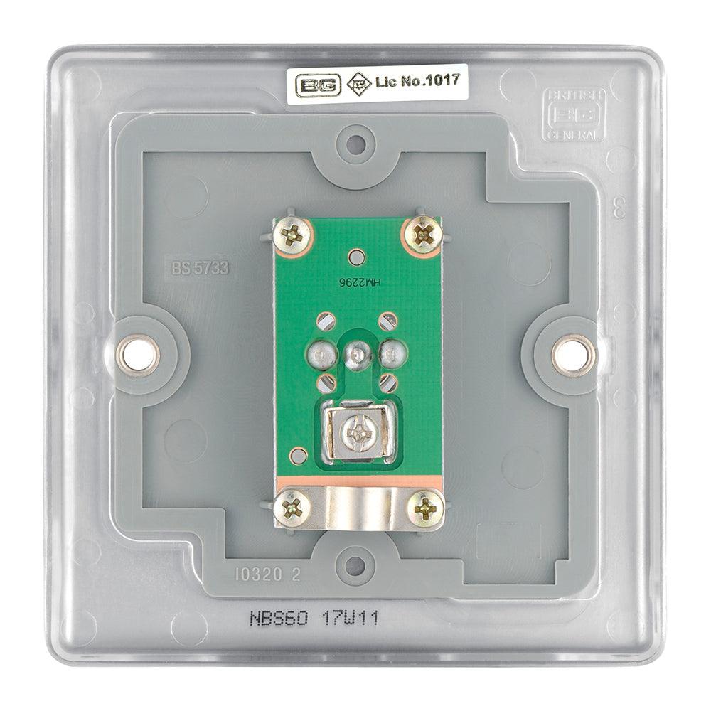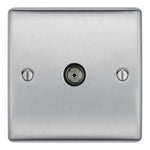 The BG NBS60 is a Single Socket TV/FM Co-axial Aerial Socket made from high quality components, in a sleek and stylish brushed steel finish.