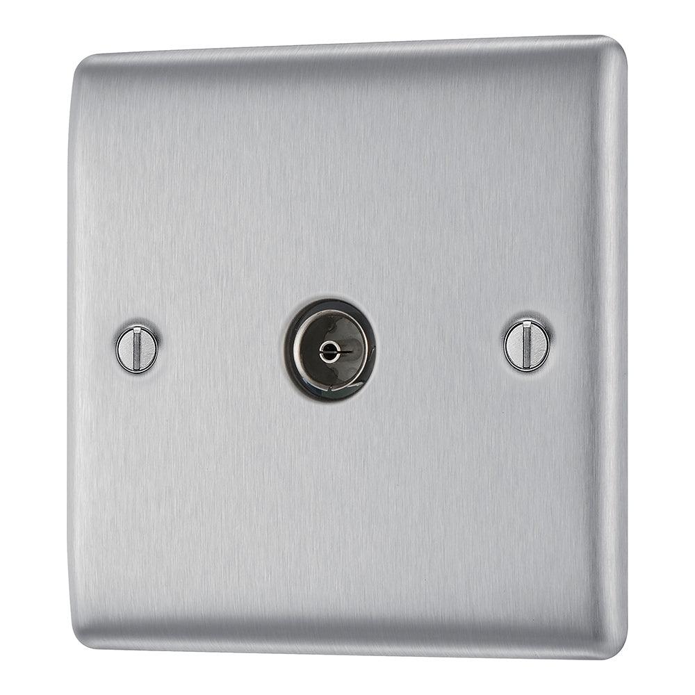 BG NBS60 Stainless Steel Single Socket TV/FM Co-axial Aerial Connection