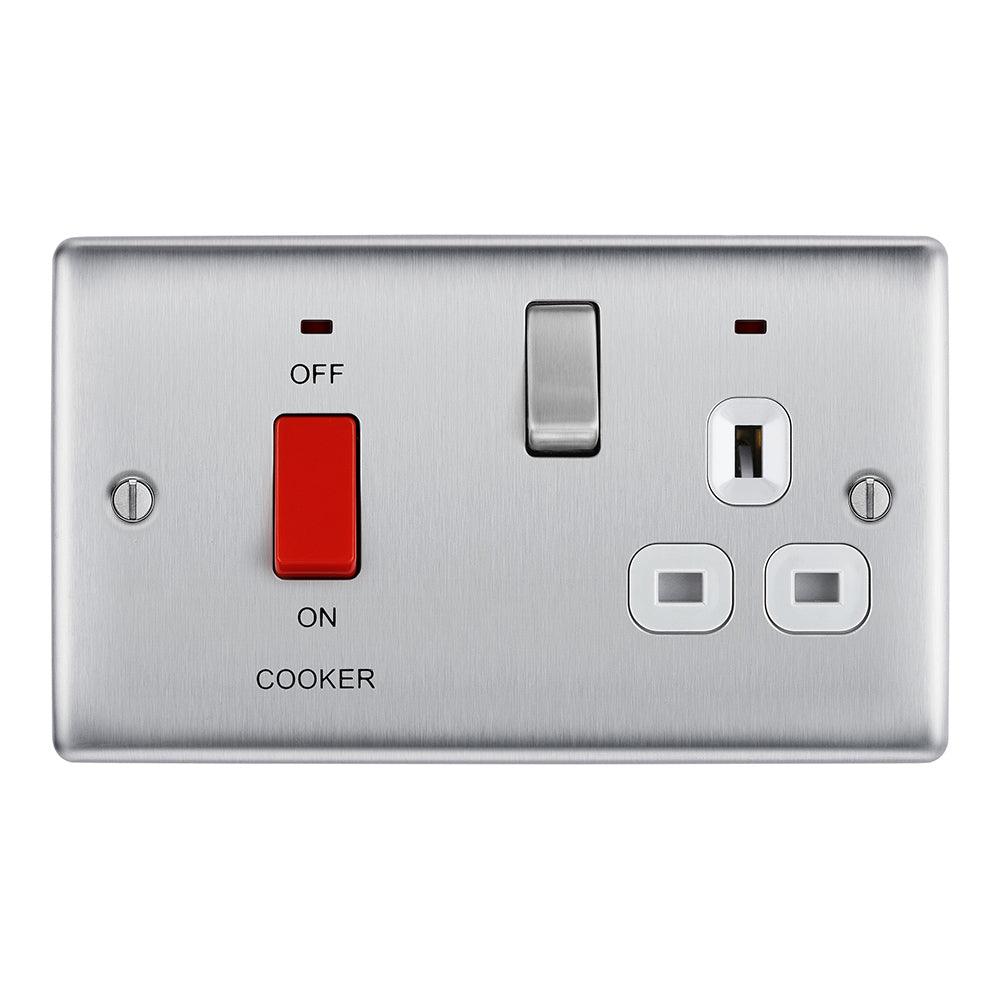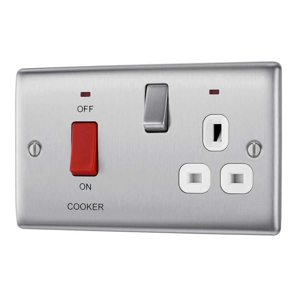 The BG NBS70W is a 45A Cooker Control Unit with Switched Socket with Neon made from high quality components, in a sleek and stylish brushed steel finish.