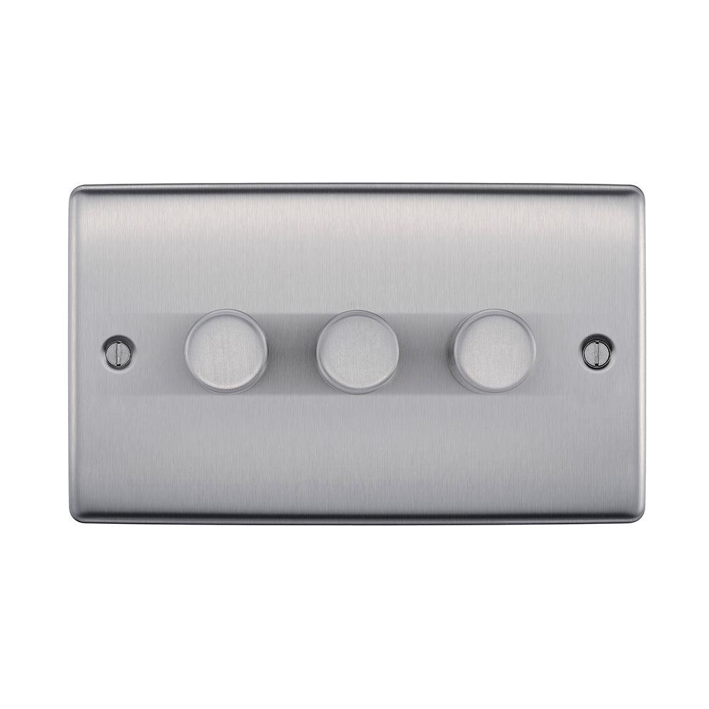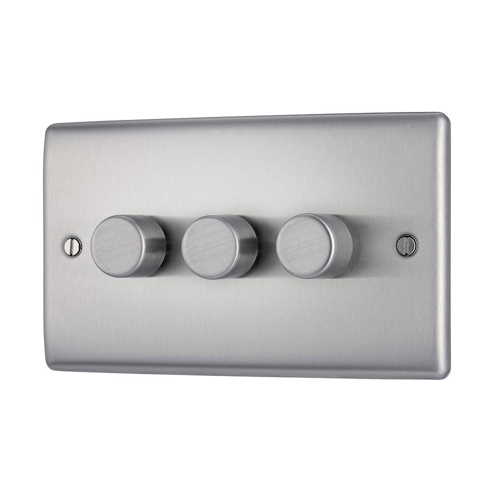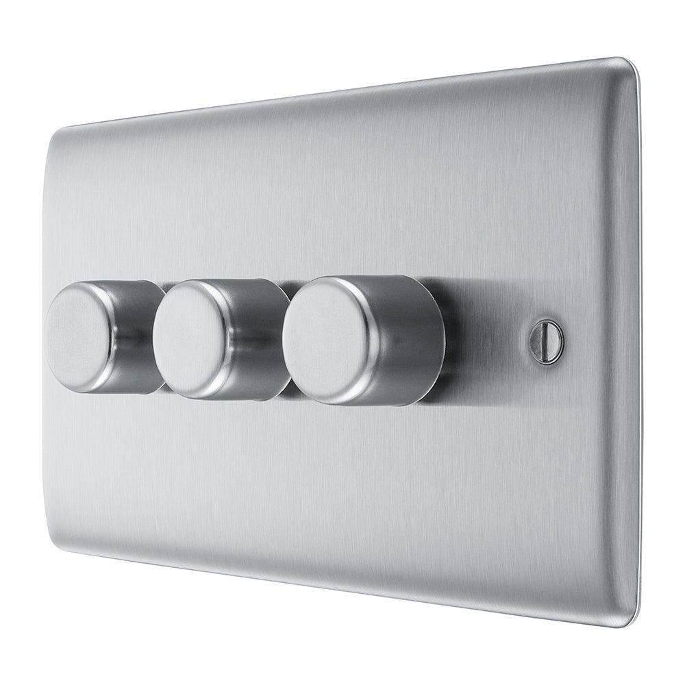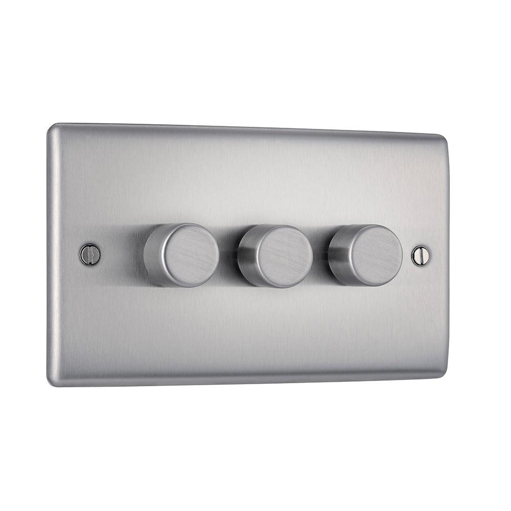 BG NBS83 Stainless Steel Triple Intelligent LED 2 Way Dimmer Switch