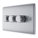 The BG NBS83 is a 3 Gang LED Dimmer Switch made from high quality components, in a sleek and stylish brushed steel finish.