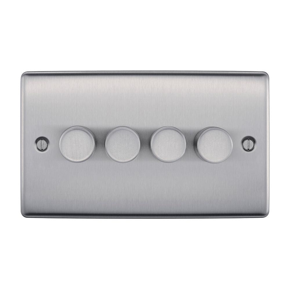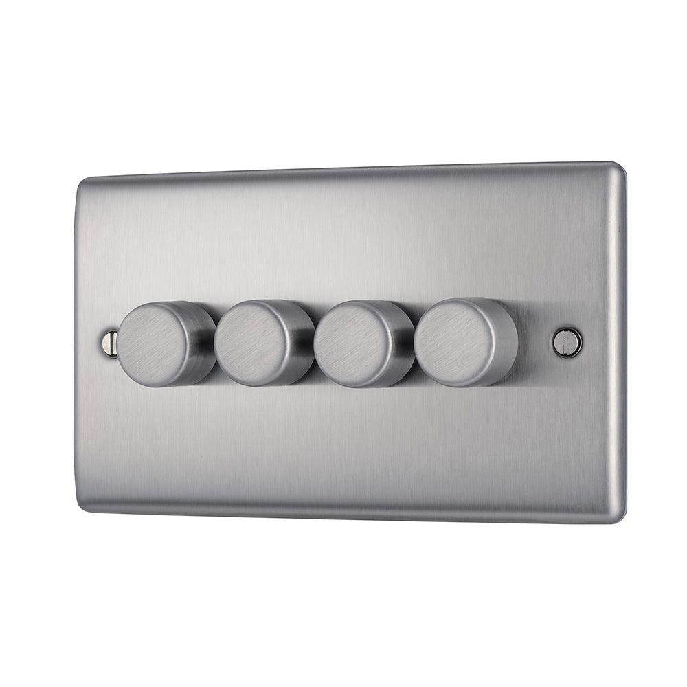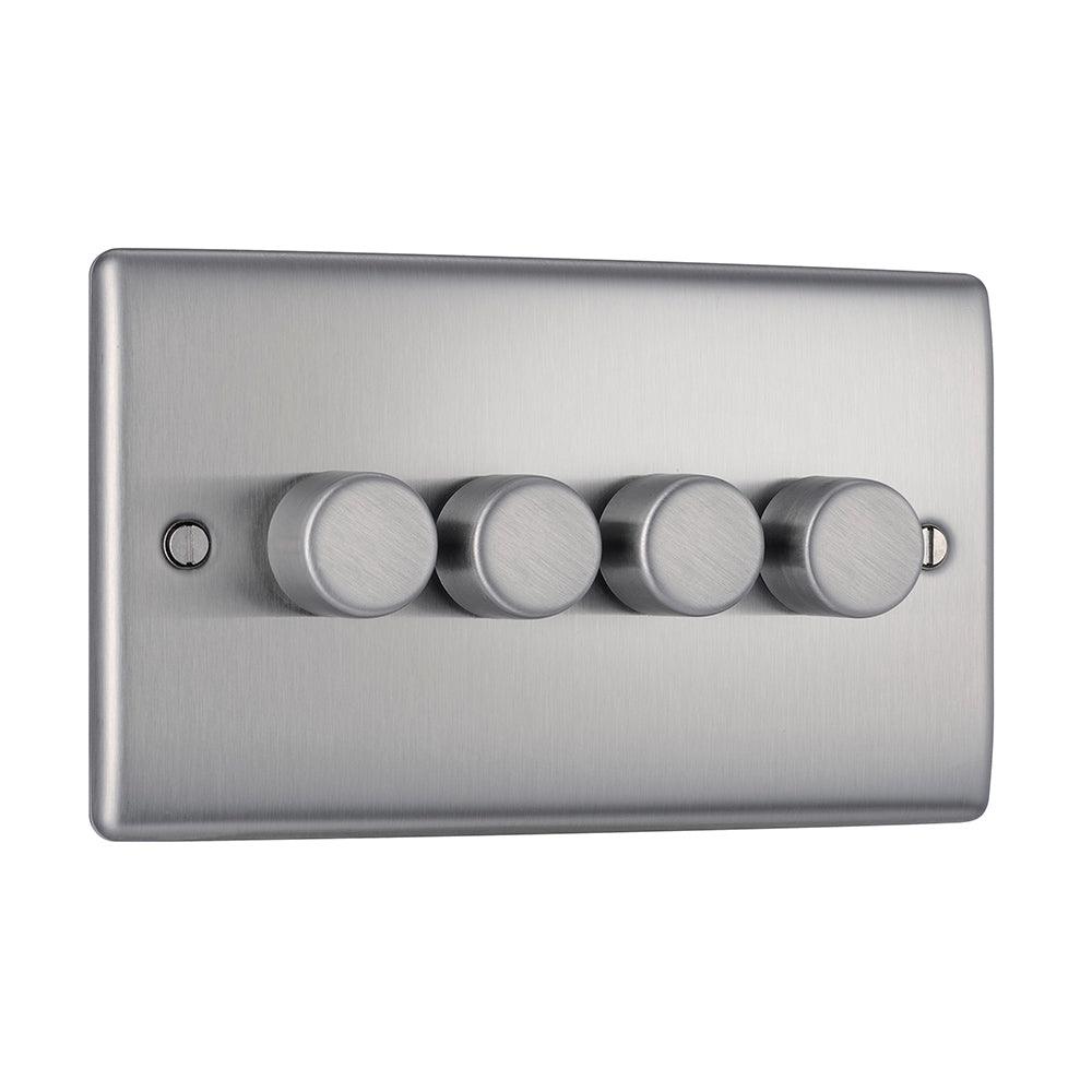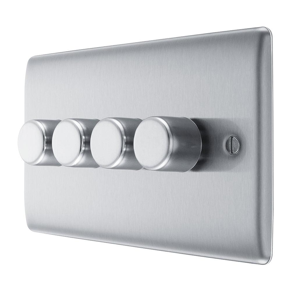 BG NBS84 Stainless Steel Quad Intelligent LED 2 Way Dimmer Switch