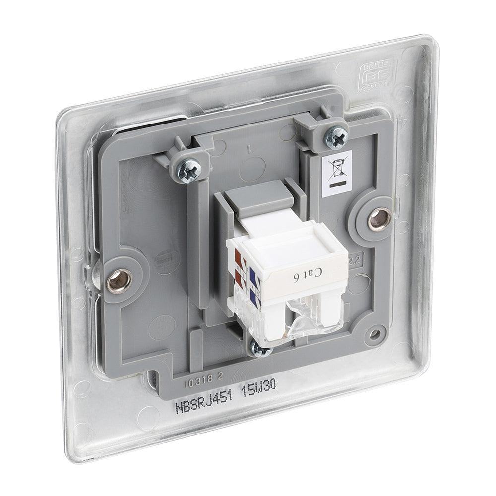 The BG NBSRJ451 is a Single RJ45 Telephone Socket made from high quality components, in a sleek and stylish brushed steel finish.
