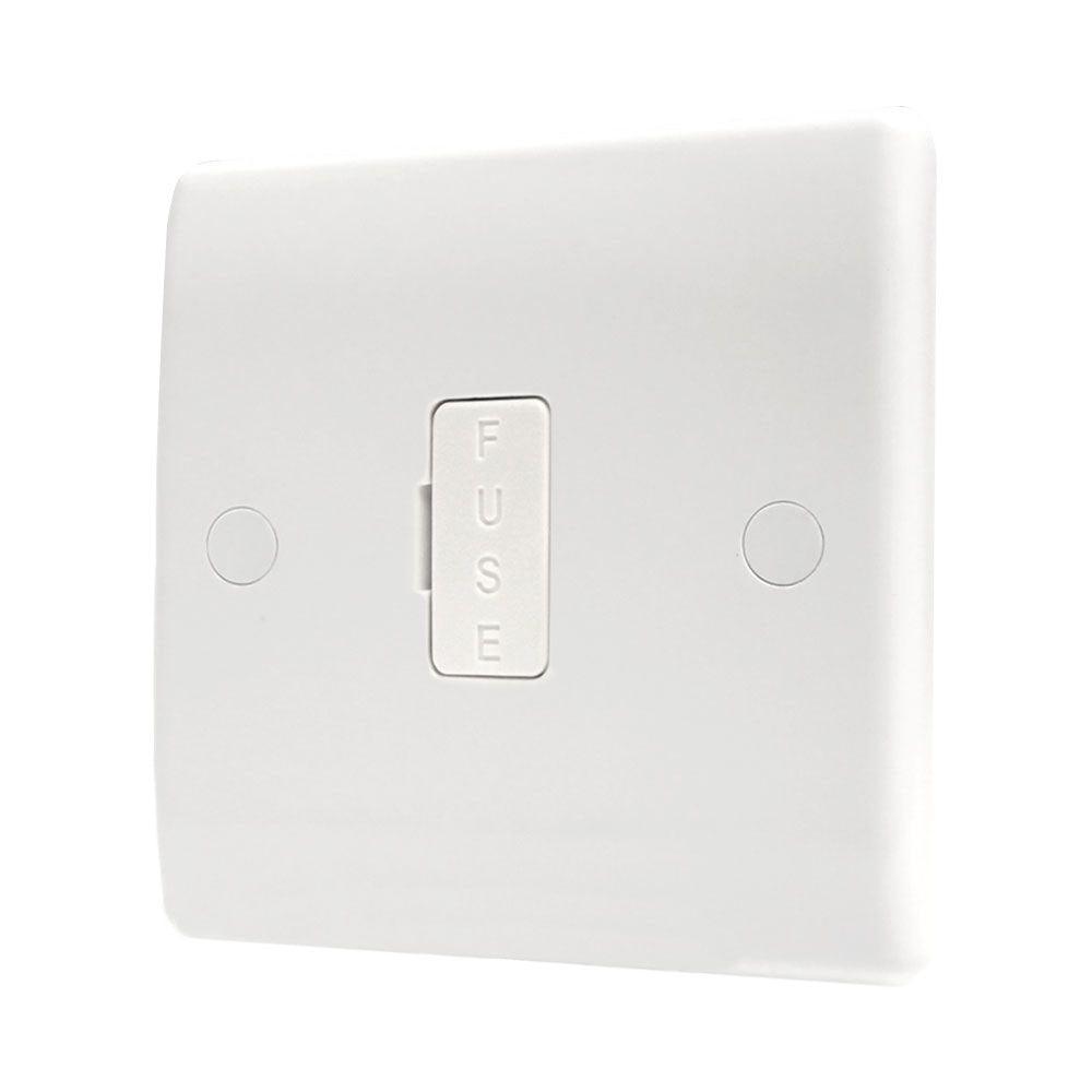 Sometimes referred to as a fused spur, but also a connection unit. This often overlooked item enables connection of an appliance that would usually have a plug and needs constant, uninterrupted power, like a fridge or dishwasher, without them taking up socket space on a kitchen worktop. Fitted usually under the kitchen worktop, being unswitched means there is no danger of the appliance being switched off if the connection is knocked by accident.