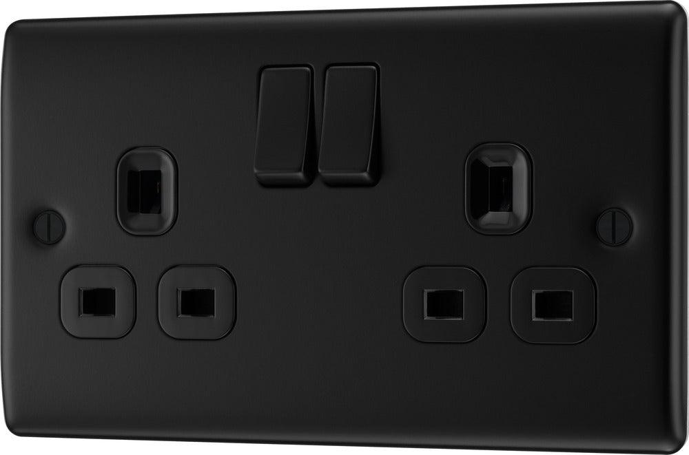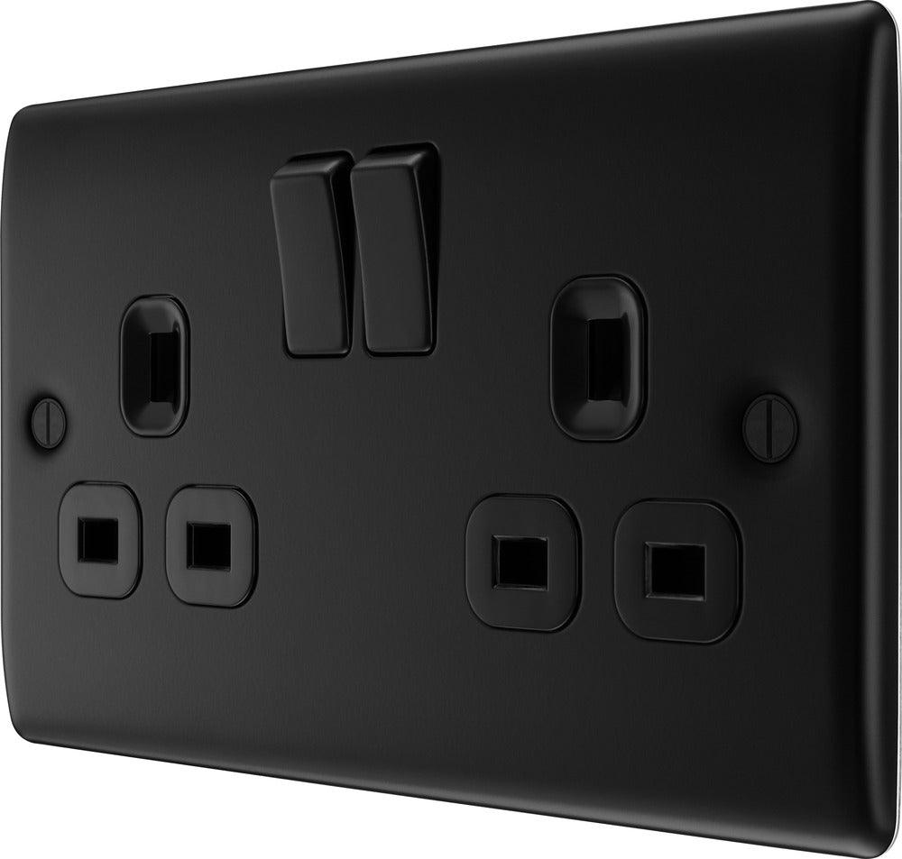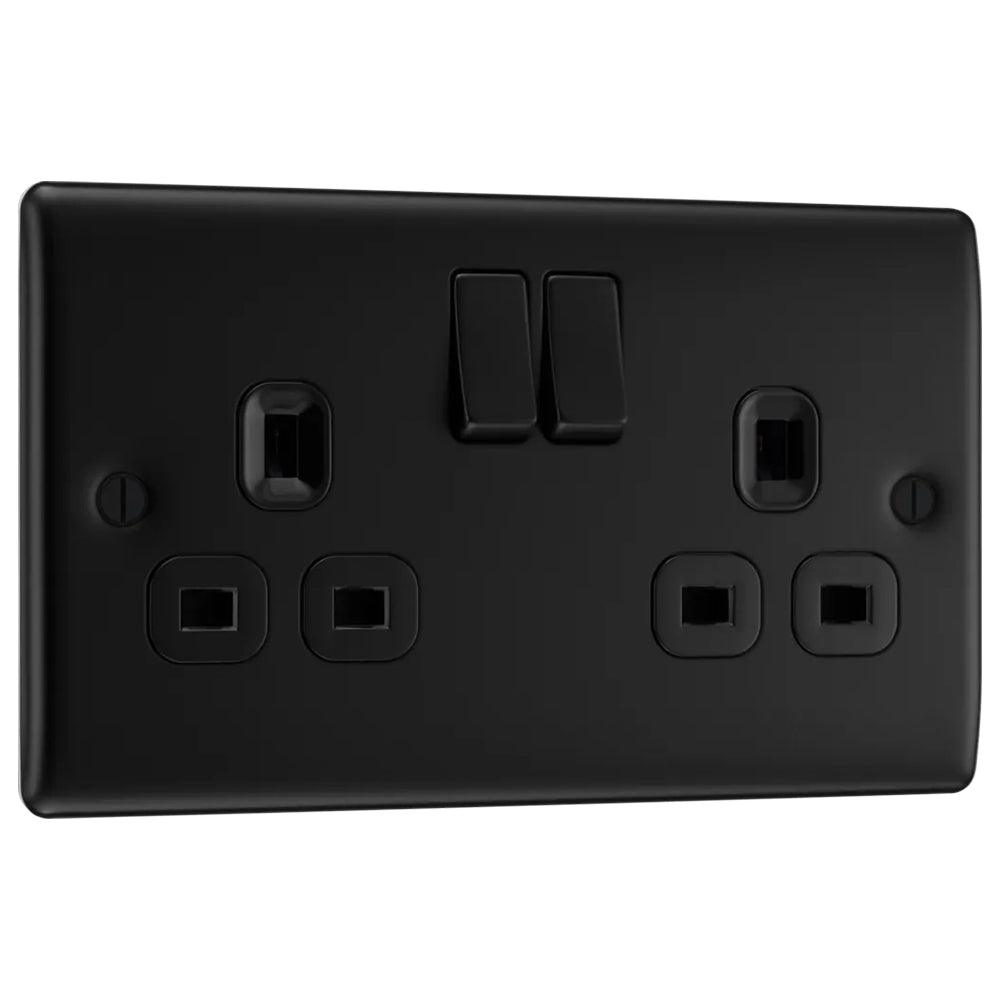 BG NFB22B Matt Black Double Switched 13A Socket