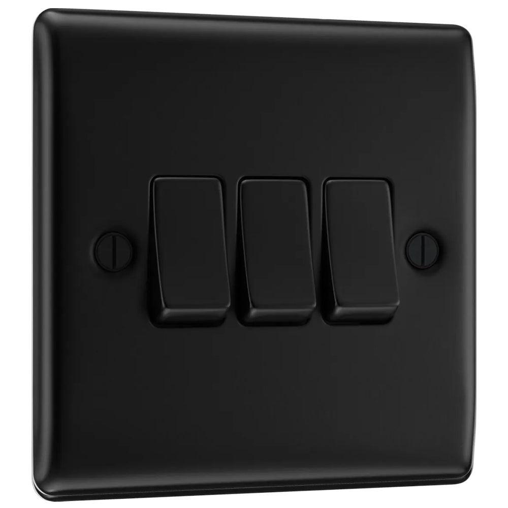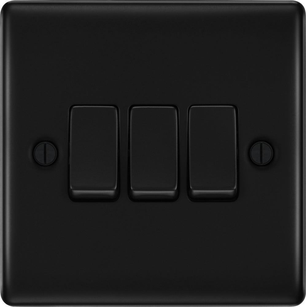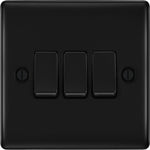 BG NFB43 Matt Black Triple Switch 10A 2 Way