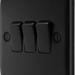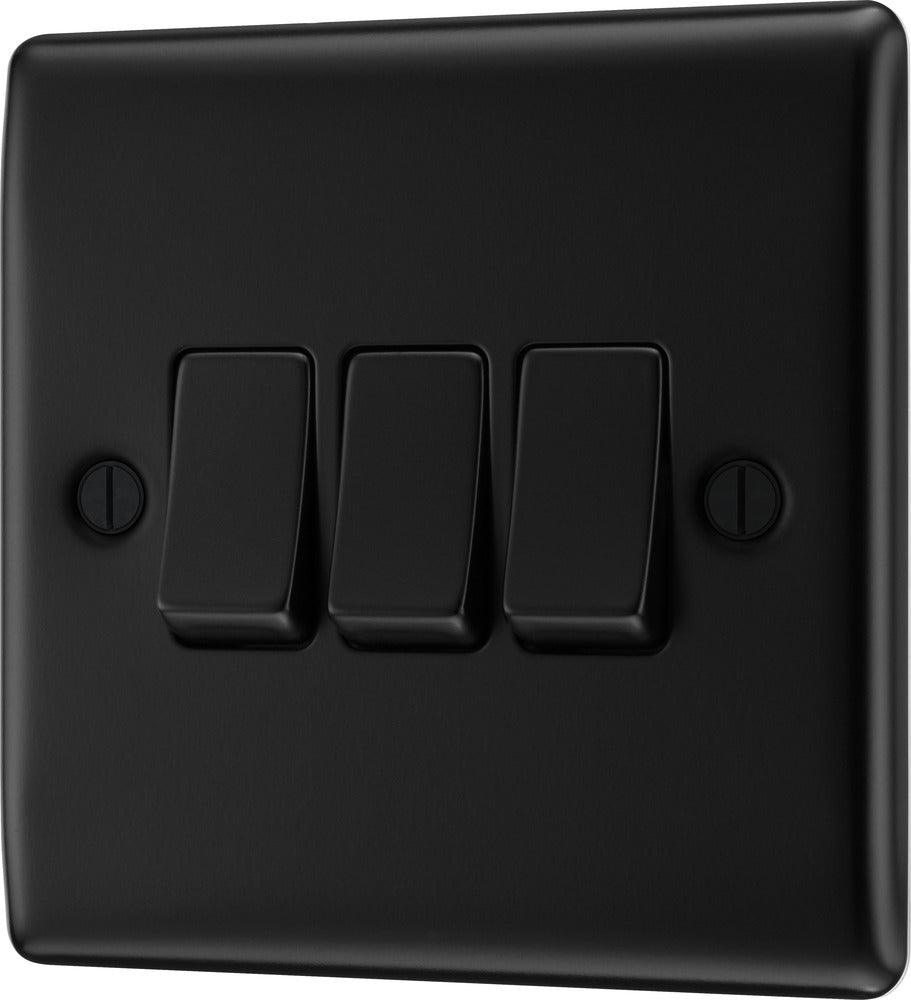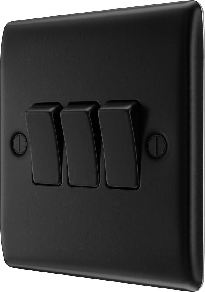 The BG NFB43 is a 3 Gang Light Switch made from high quality components, in a sleek and stylish matt black finish.