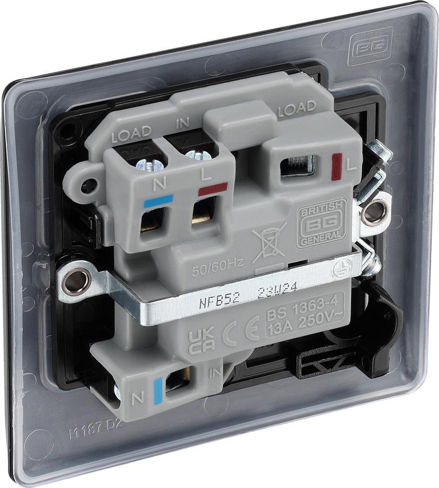 The BG NFB52 is a Switched Fused Socket Unit with Neon made from high quality components, in a sleek and stylish matt black finish.