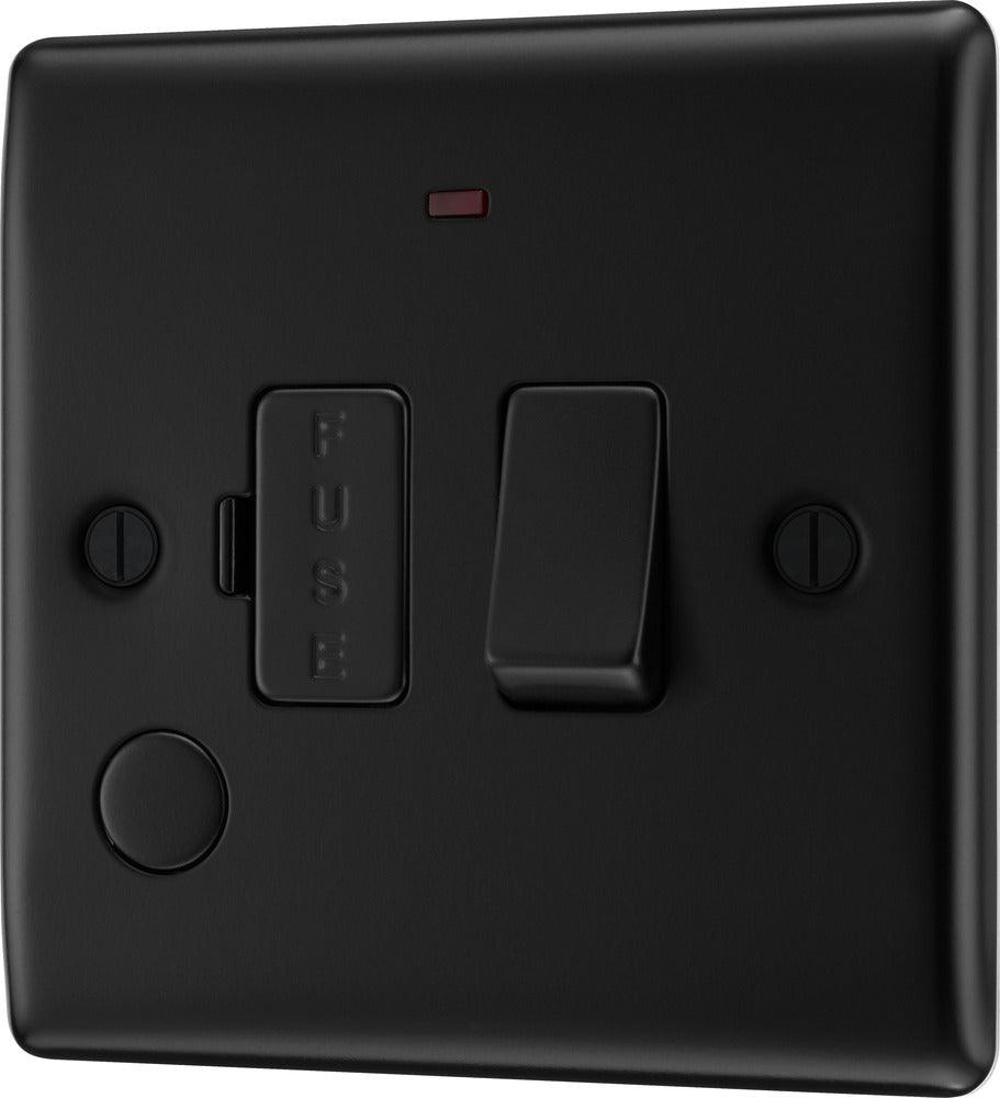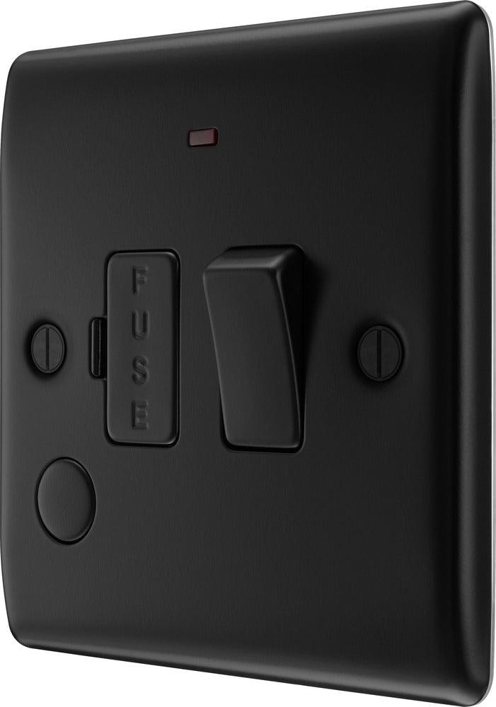 BG NFB53 Matt Black Switched 13A Fused Connection Unit with Neon and Cable Outlet