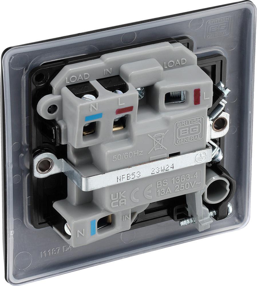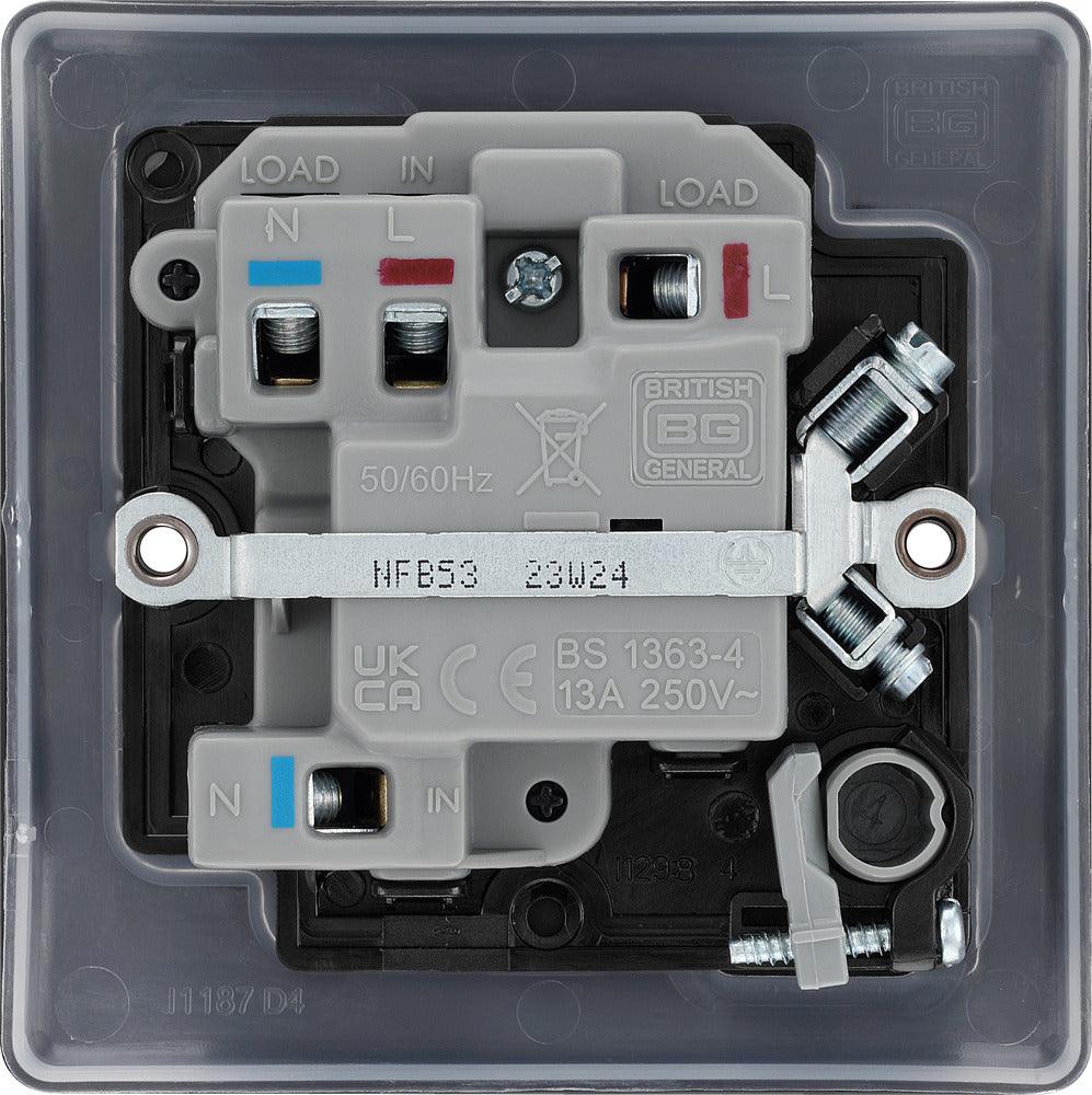 The BG NFB53 is a Switched Fused Socket Unit with Neon and Cable Outlet made from high quality components, in a sleek and stylish matt black finish.