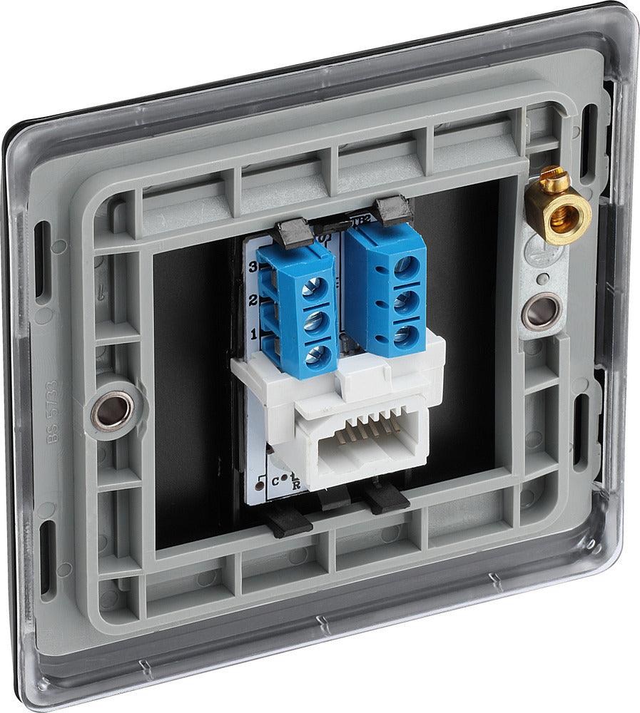 The BG NFBBTS1 is a Single Slave Telephone Socket made from high quality components, in a sleek and stylish matt black finish.