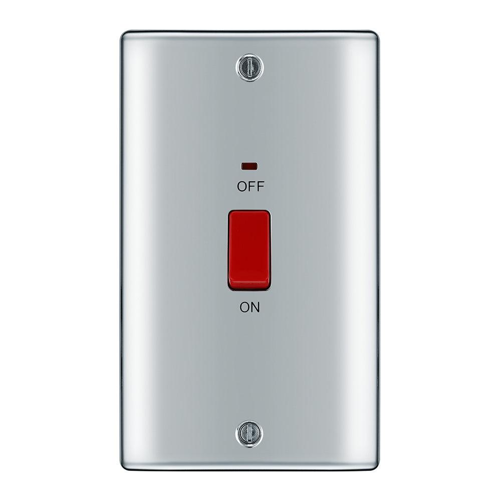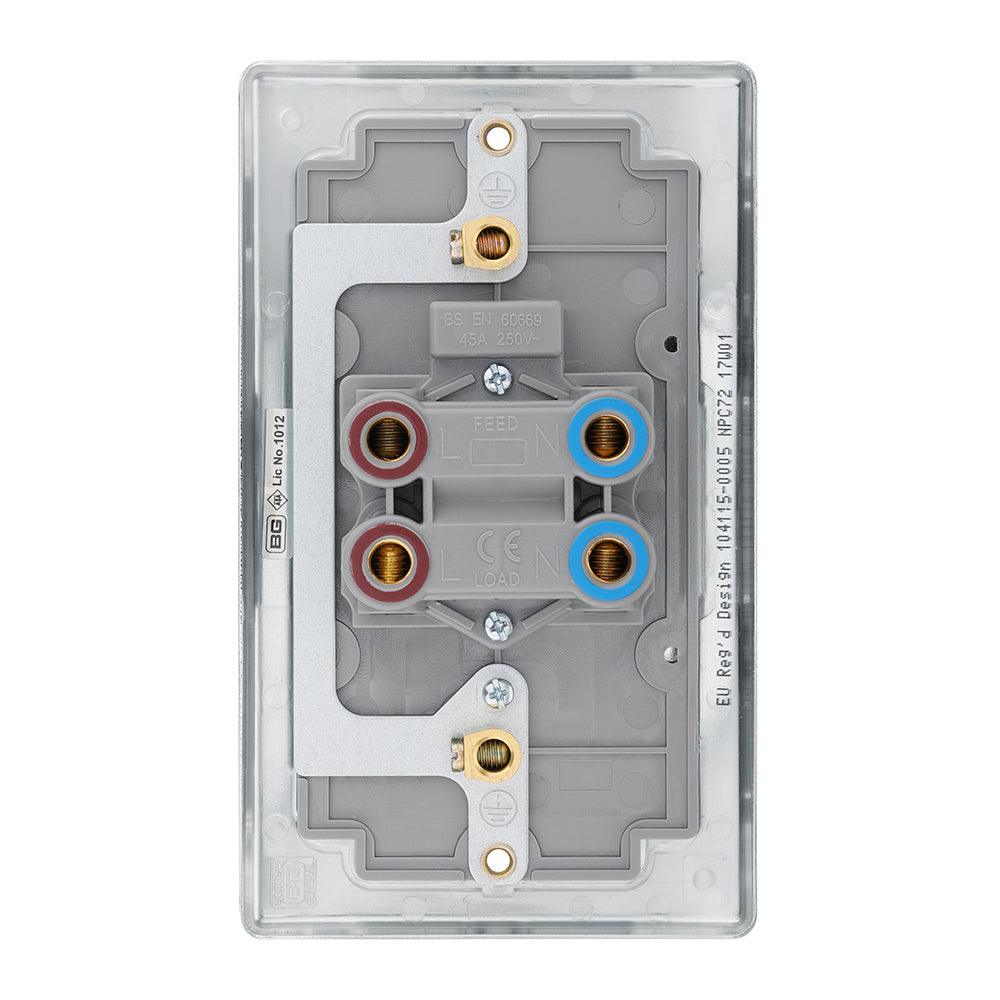 The BG NPC72 is a 45A Rectangular Cooker Control Unit with Neon made from high quality components, in a sleek and stylish polished chrome finish.