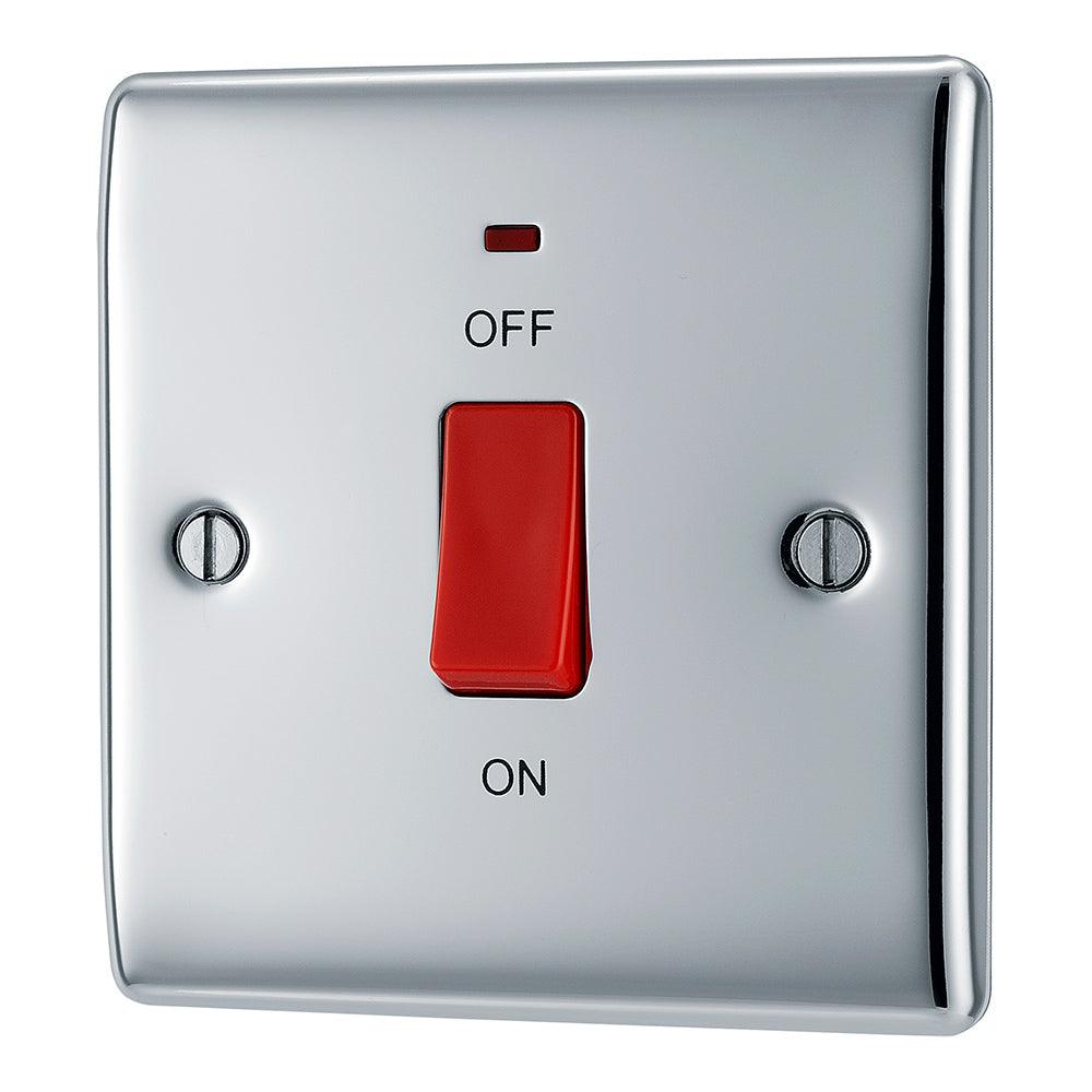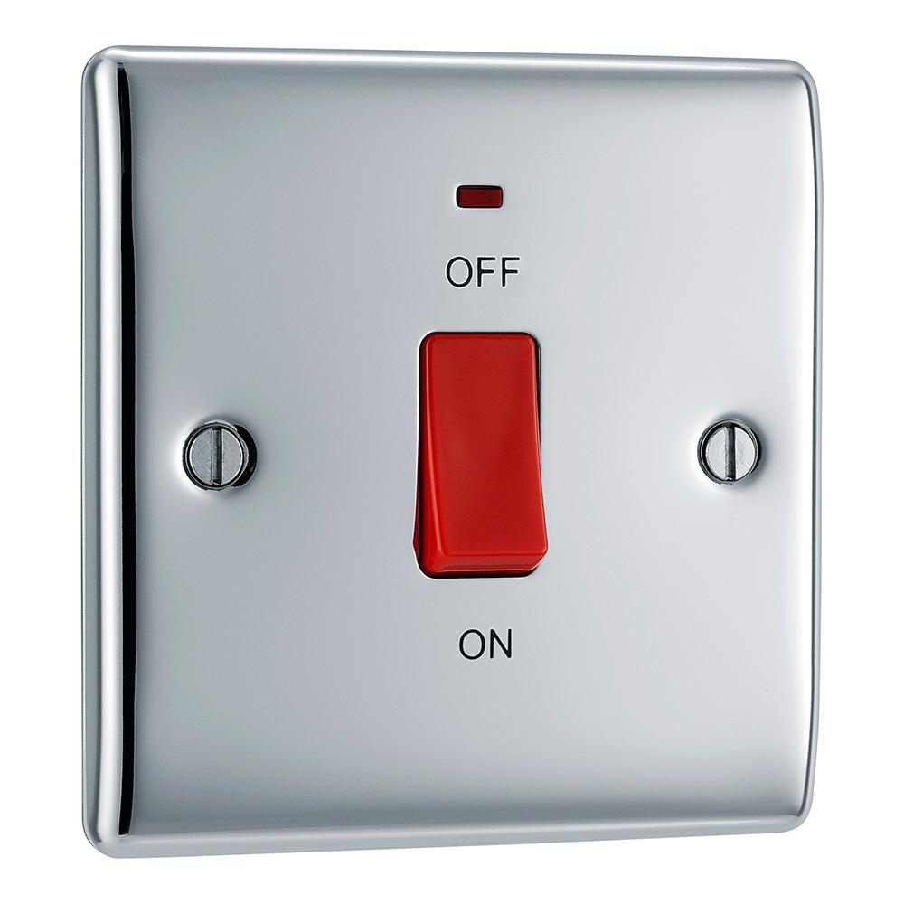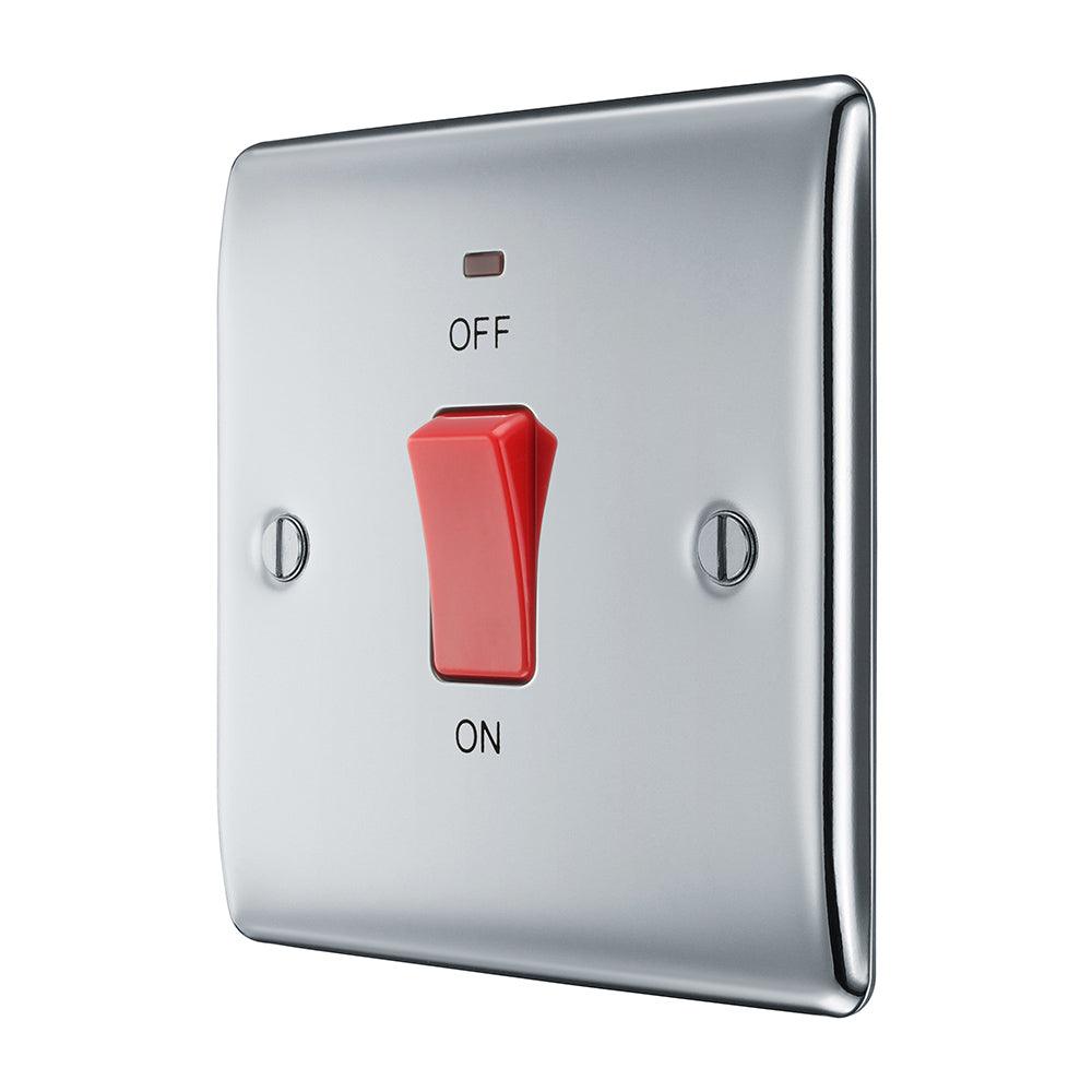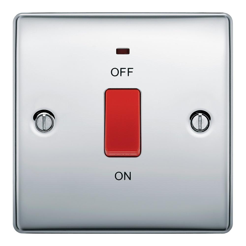 The BG NPC74 is a 45A Square Cooker Control Unit with Neon made from high quality components, in a sleek and stylish polished chrome finish.