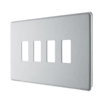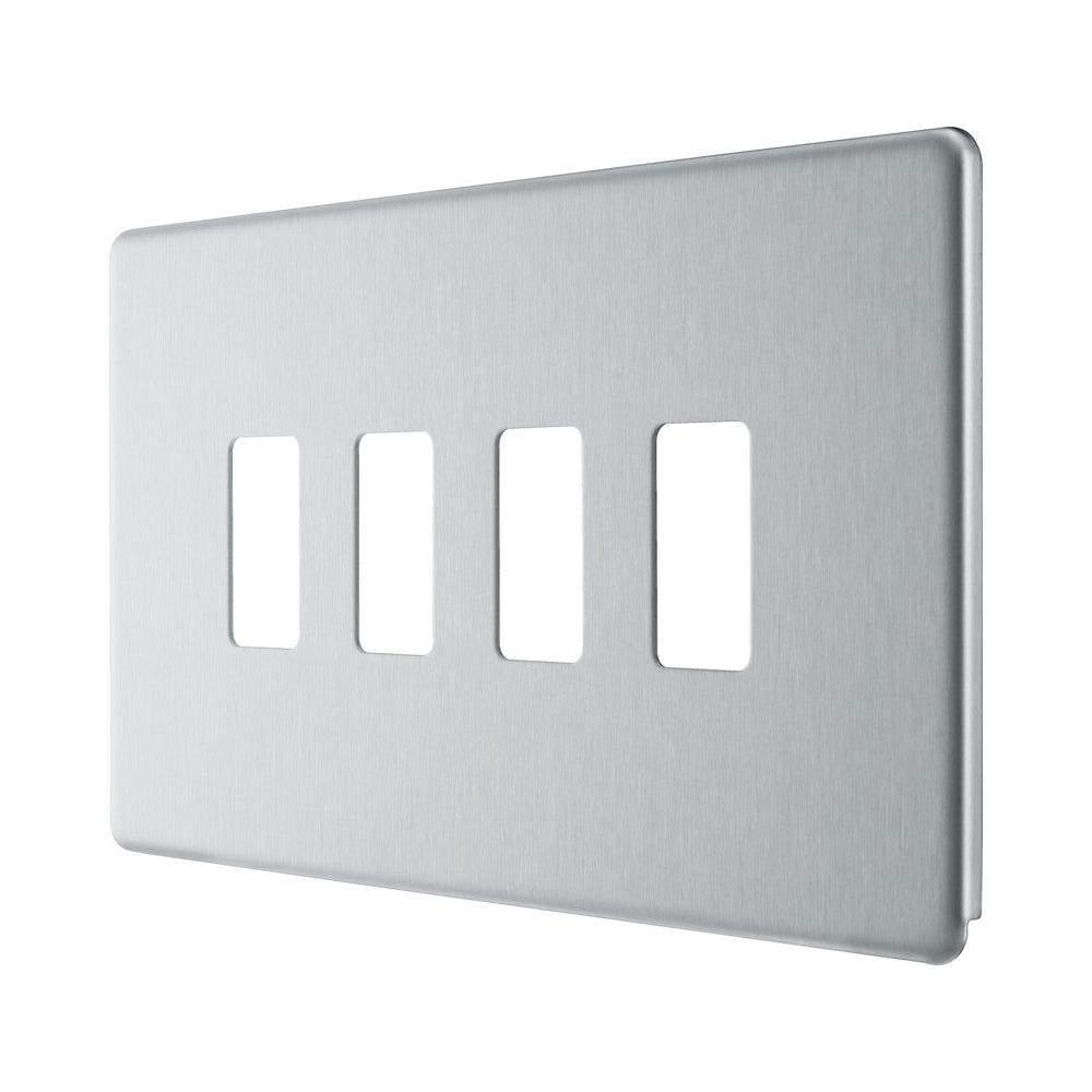 The BG RFBS4 is a 4 Gang Double Grid Front Flat Plate in Brushed Steel Finish.