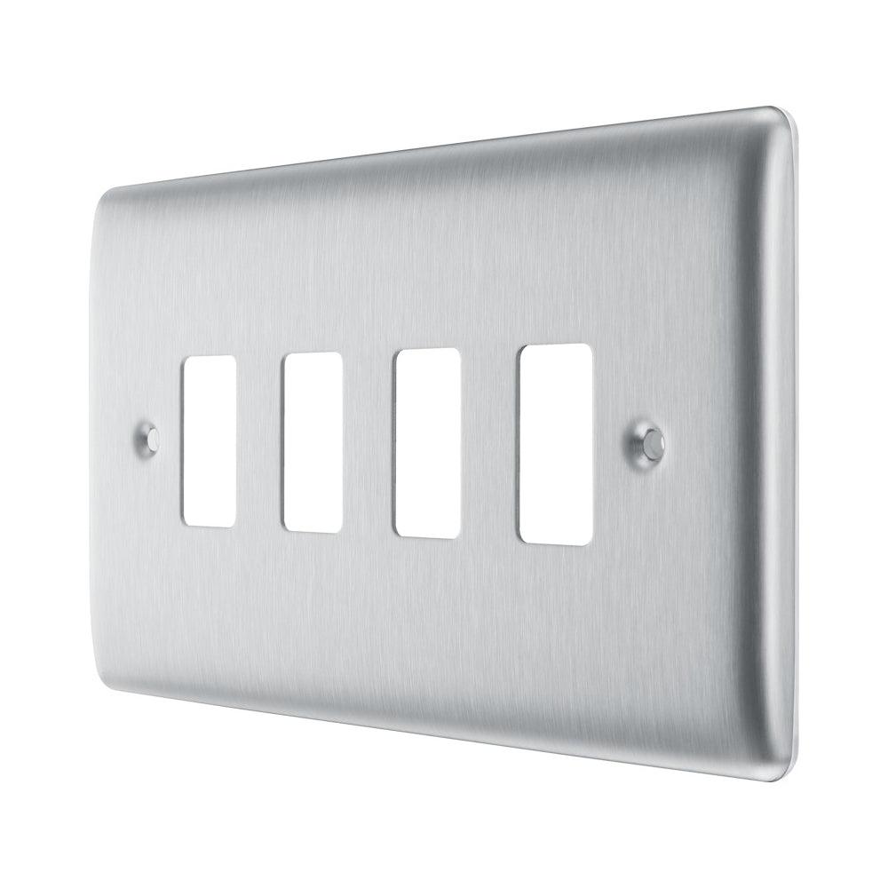 BG RNBS4 4 Gang Double Grid Front Plate Stainless Steel