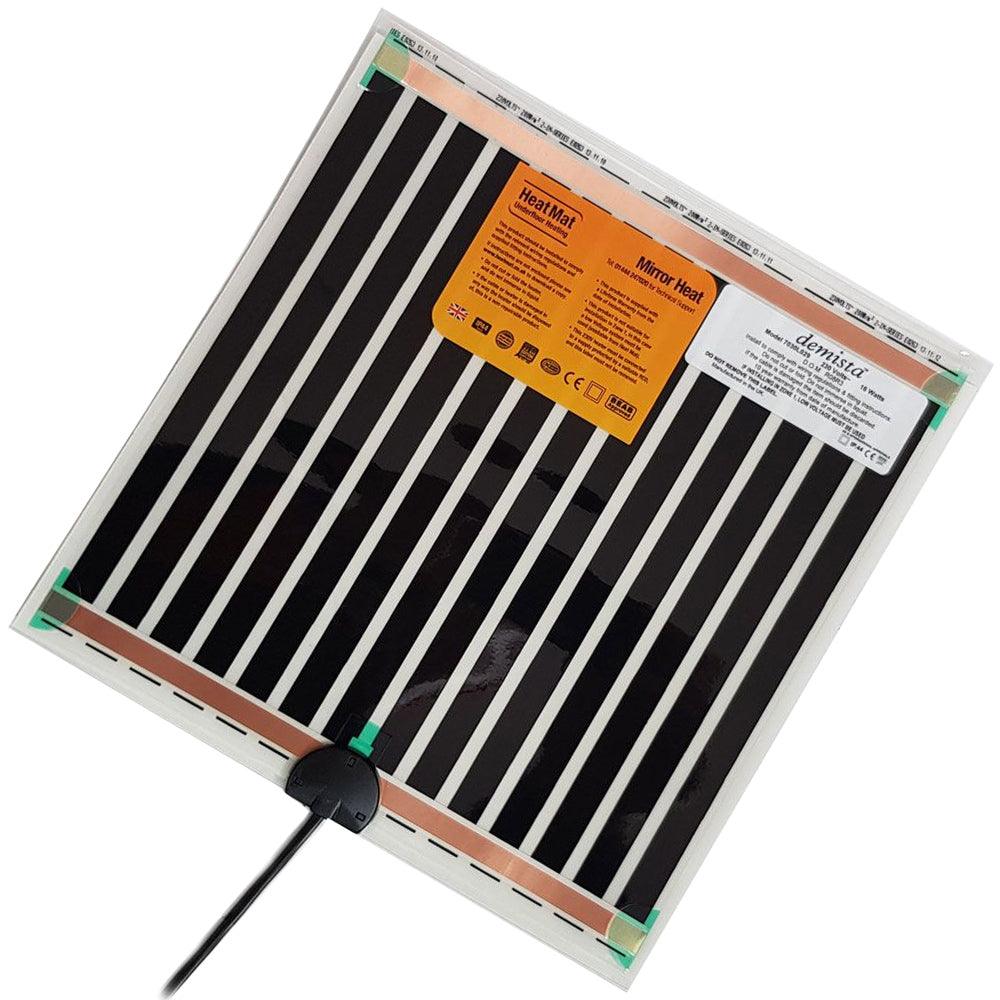 Cost-effective and simple to fit, the 1mm, ultra slim heated mirror demister pad fit inconspicuously to new or existing, bathroom mirrors. Manufactured from high quality, double insulated polyester and polyethylene which offers temperature stability and resistance to moisture, vibration, dust and ageing, offering years of maintenance free service.