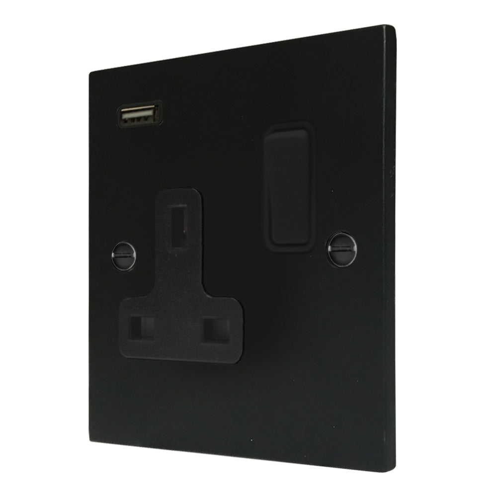 Hamilton 7MBSS1USBBL-B Matt Black Switched Single USB Socket