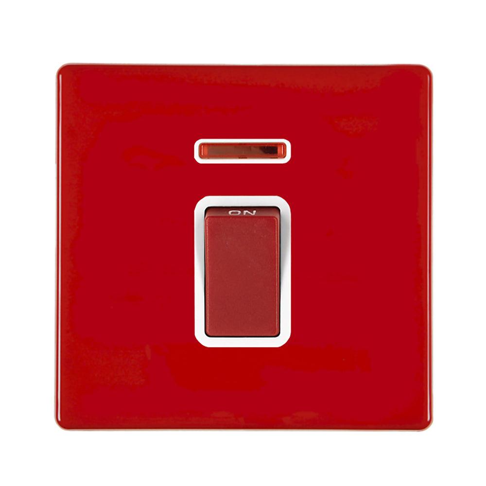The Hamilton 7RC45NW is a 45A double pole isolator with neon indicator made using high quality materials, in a slim and elegant gloss red finish.