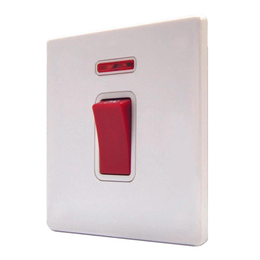 Hamilton 7WC45NW CFX Gloss White 45a Double Pole Switch + Neon