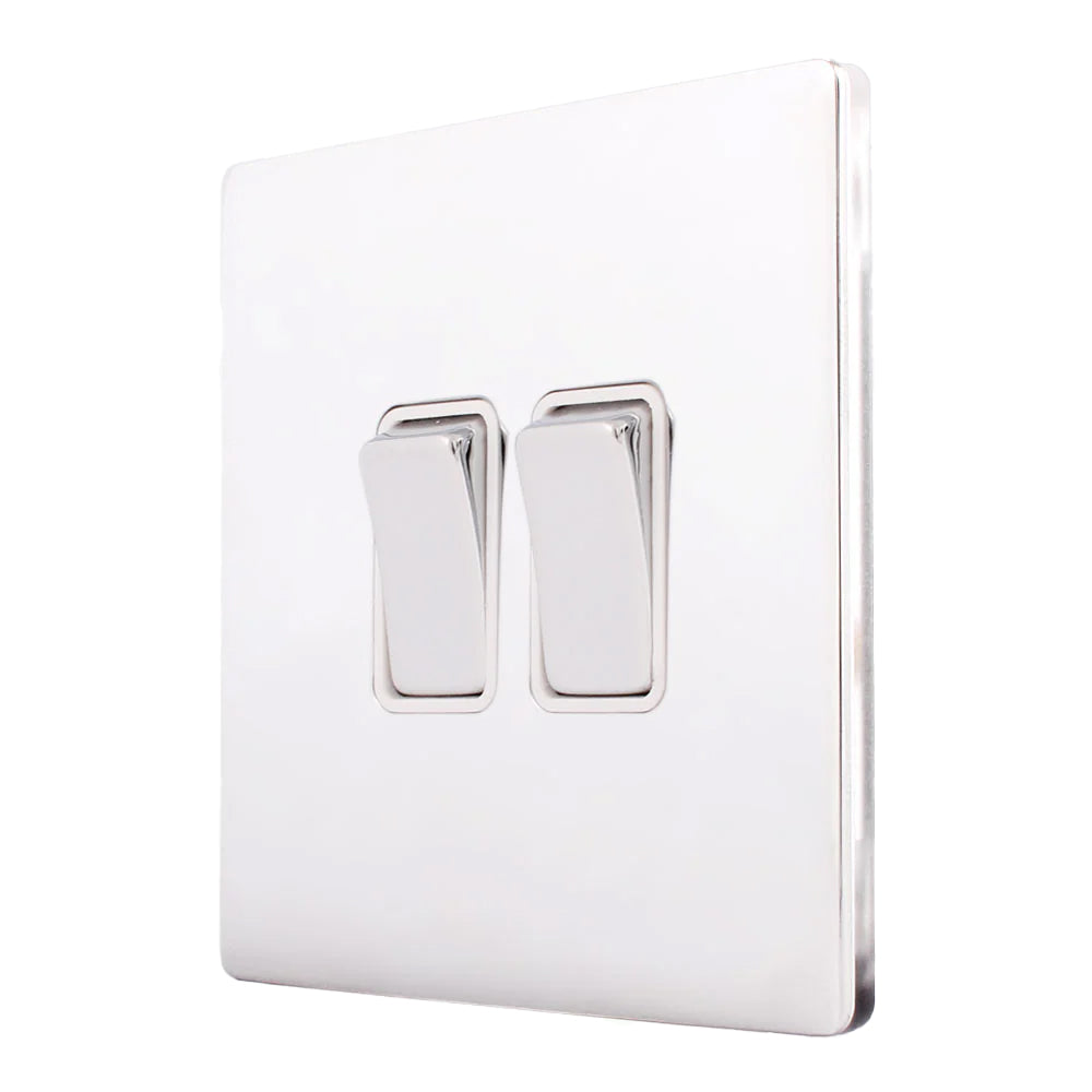 Hamilton 87CR22BC-W CFX Polished Chrome 10a Light Switch 2 Gang 2 Way