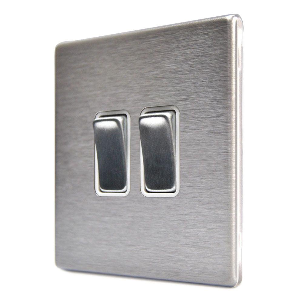 The Hamilton 74CR22SS-W is a 10A double 2 way light switch made using high quality materials, in a slim and elegant satin steel finish.