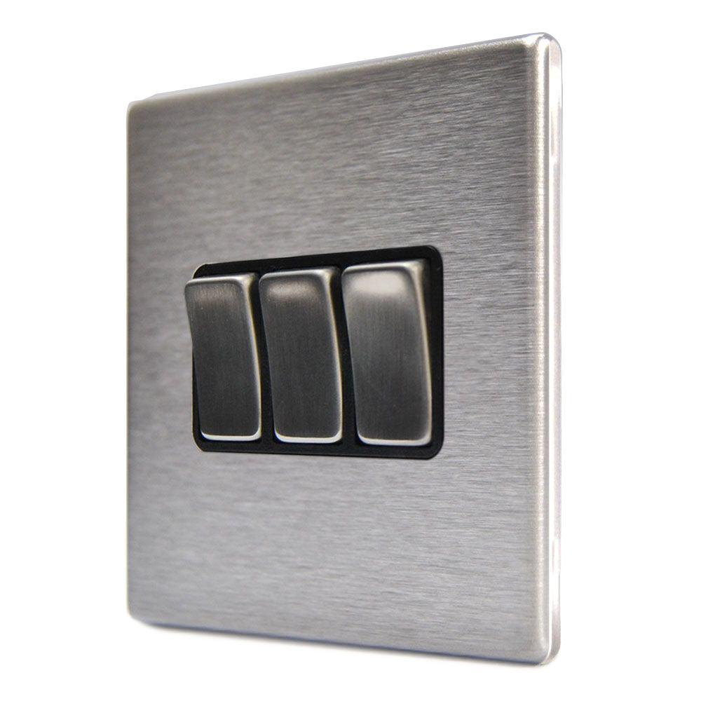 The Hamilton 74CR23SS-B is a 10A triple 2 way light switch made using high quality materials, in a slim and elegant satin steel finish.