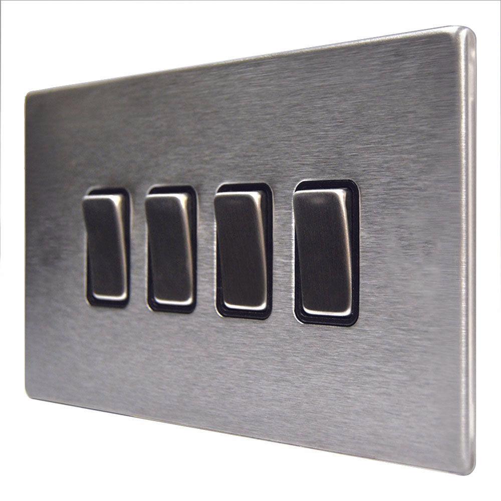 The Hamilton 74CR24SS-B is a 10A quadruple 2 way light switch made using high quality materials, in a slim and elegant satin steel finish.