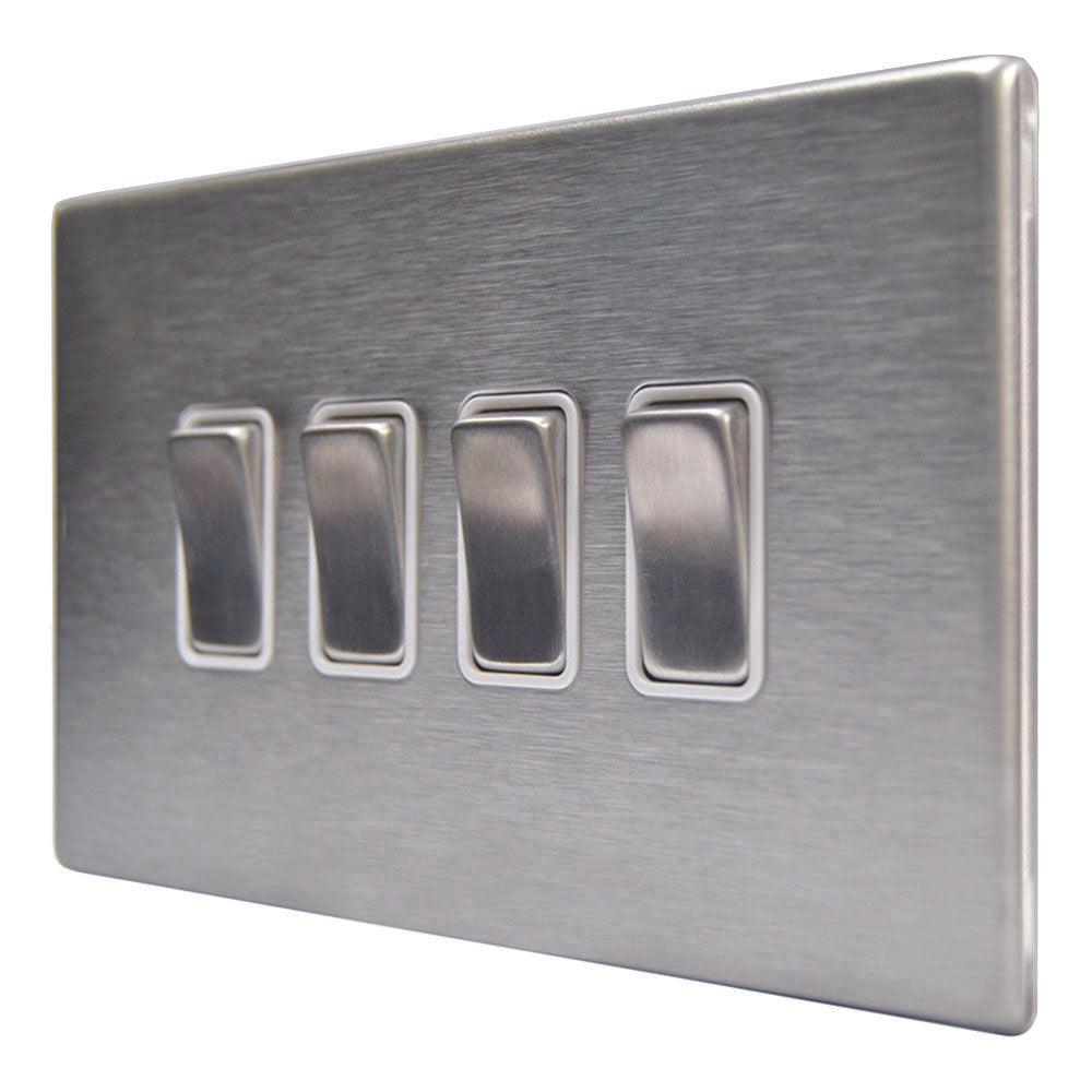 The Hamilton 74CR24SS-W is a 10A quadruple 2 way light switch made using high quality materials, in a slim and elegant satin steel finish.