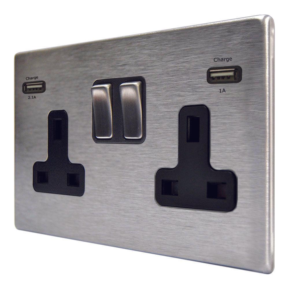 The Hamilton 74CSS2USBULTSS-B is a 13A double switched socket with dual 2.4A USB-A charger made using high quality materials, in a slim and elegant satin steel finish.