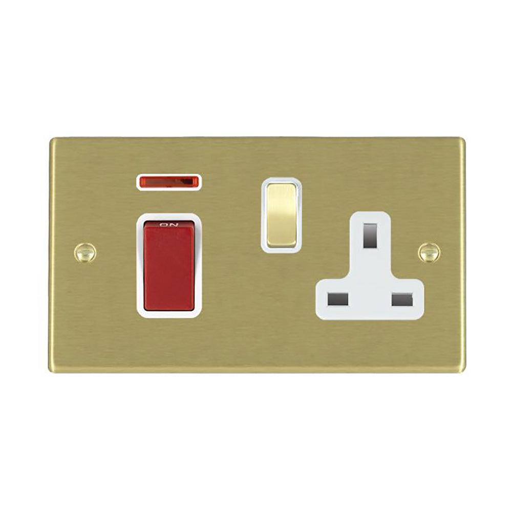 Hamilton 7245SS1SB-W Satin Brass 45A double pole isolator and switched 13A socket with neon indicator