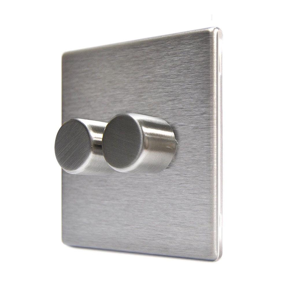 The Hamilton 74C2XLEDITB100 is a double 100w LED 2 way dimmer made using high quality materials, in a slim and elegant satin steel finish.