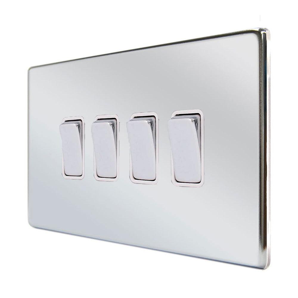 The Hamilton 77CR24BC-W is a 10A quadruple 2 way light switch made using high quality materials, in a slim and elegant bright chrome finish.
