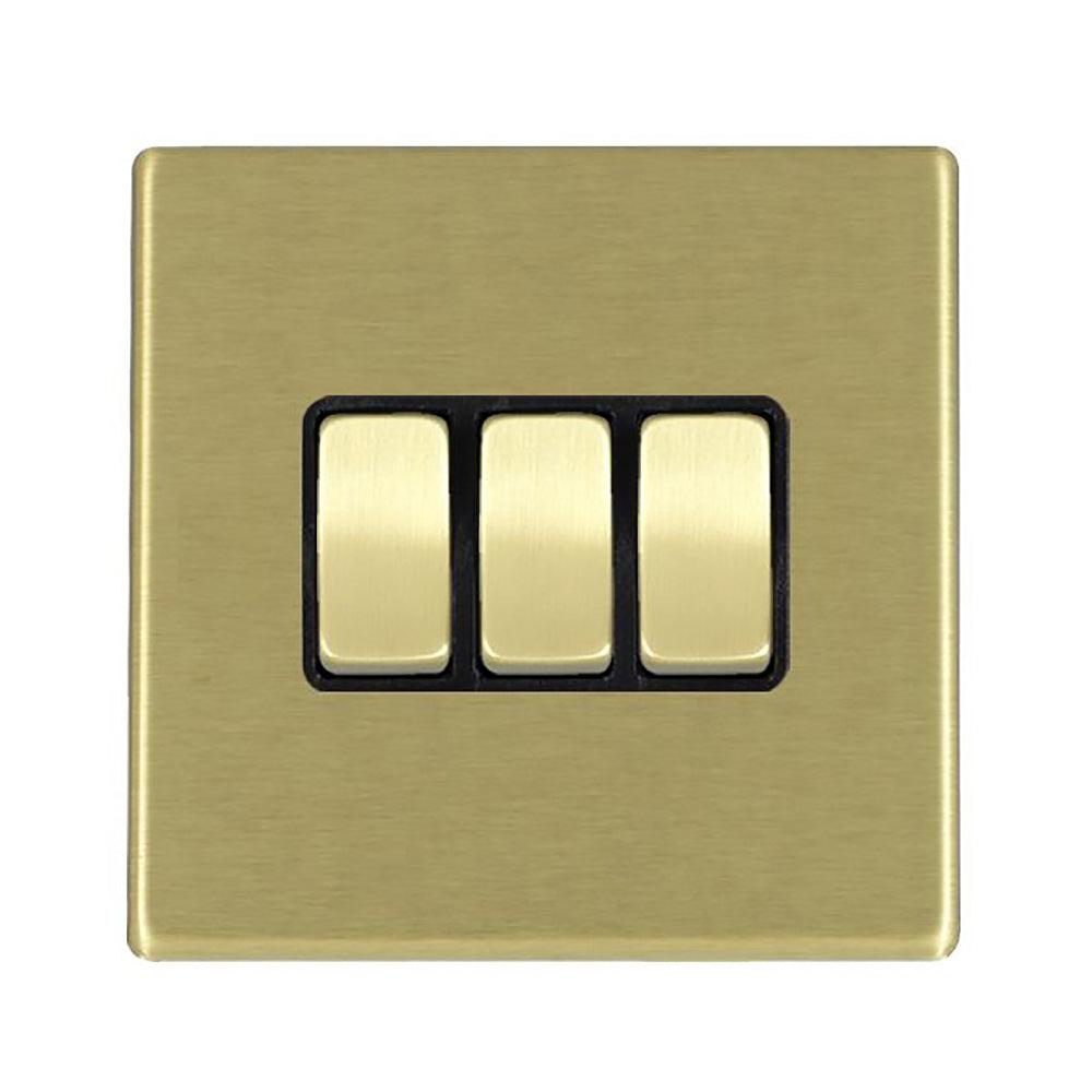 Hamilton 7G22R23SB-B G2 Satin Brass 10A triple 2 way light switch