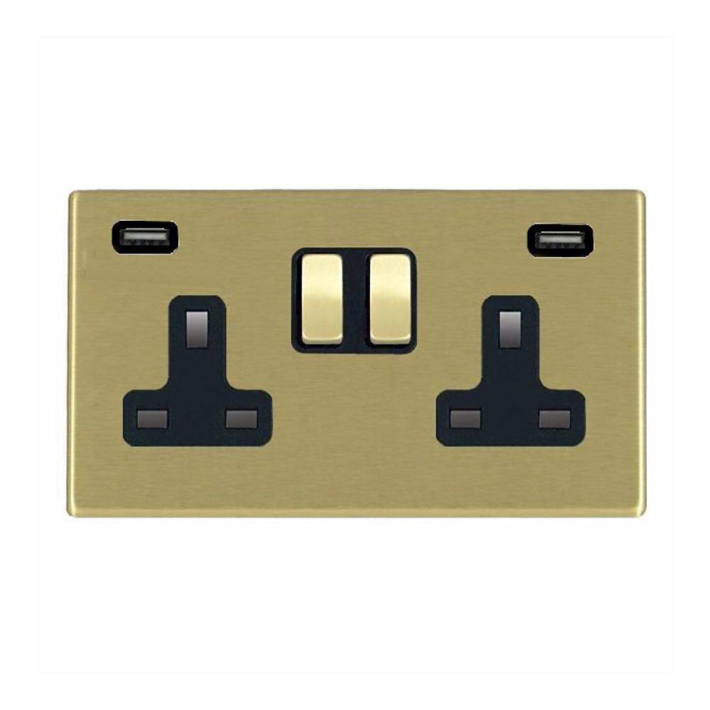 Hamilton 7G22SS2USBULTSB-B G2 Satin Brass 13A double switched socket with dual 2.4A USB-A charger