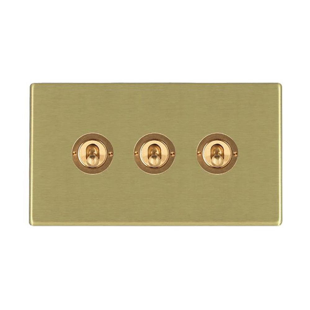 Hamilton 7G22T23 G2 Satin Brass 20A triple toggle light switch 2 way