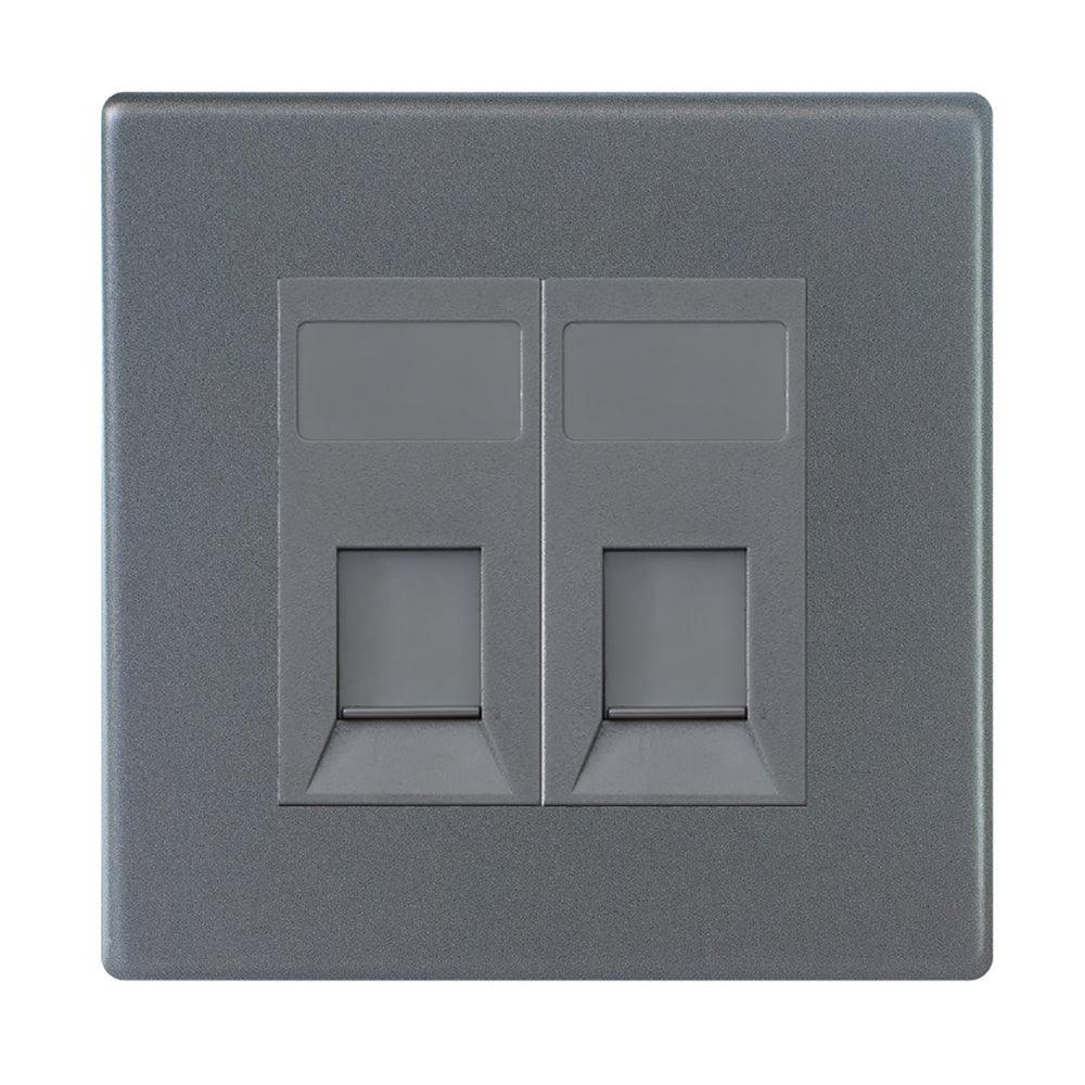 The Hamilton 7G2A2J45QG is a 2 module RJ45 CAT5E unshielded data socket made using high quality materials, in a slim and elegant anthra gray finish.