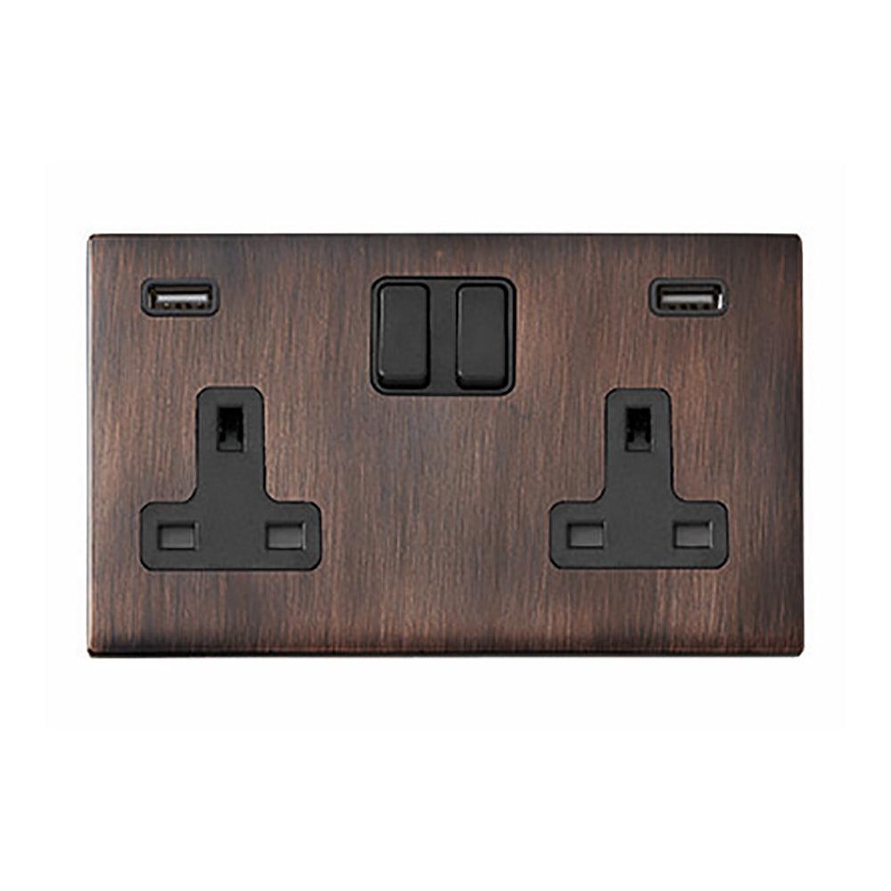 Hamilton 7G2EBSS2USBULTBL-B G2 Etrium Bronze 13A double switched socket with dual 2.4A USB-A charger